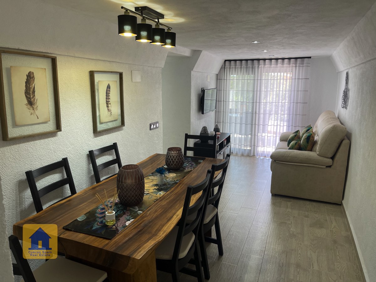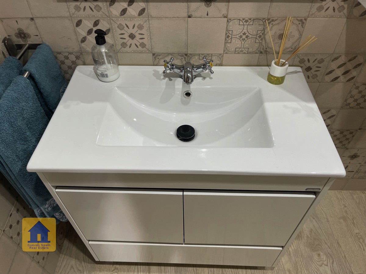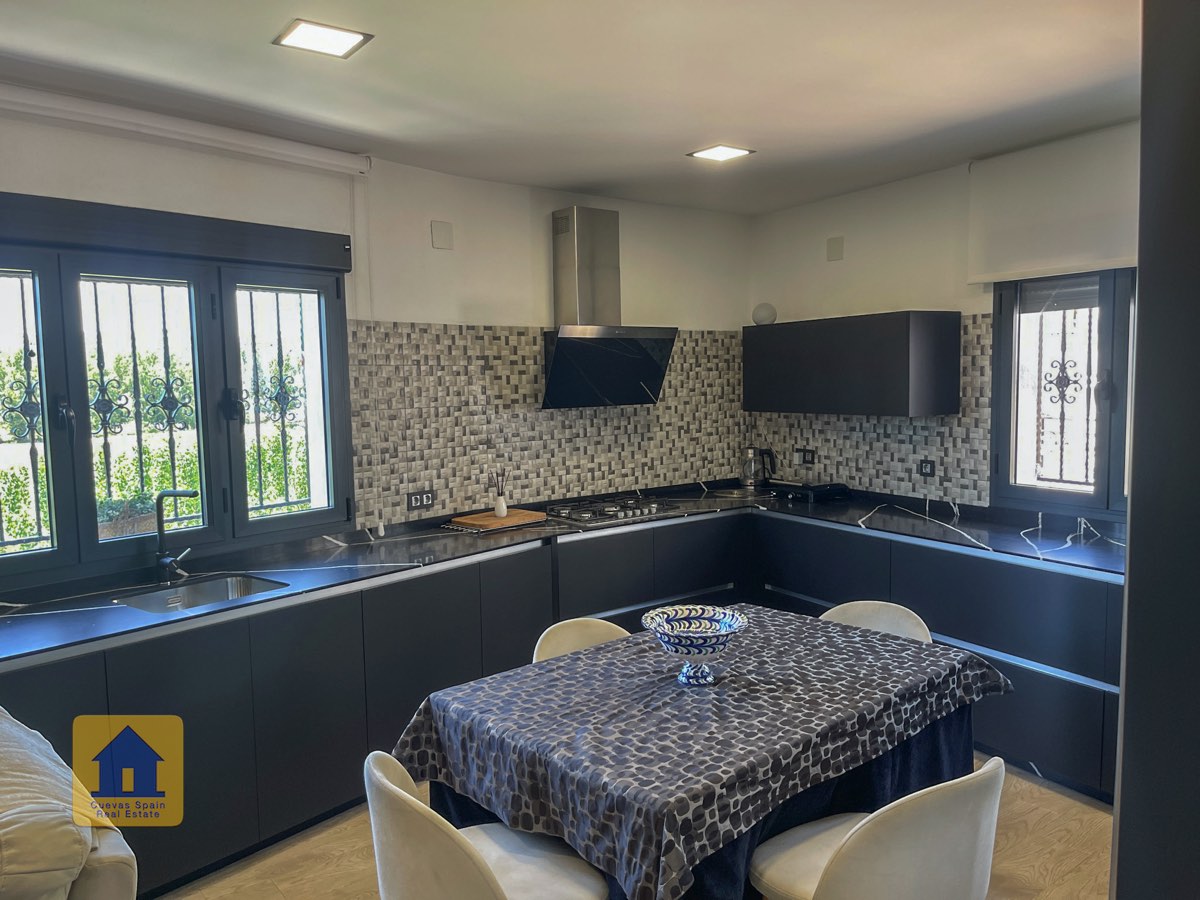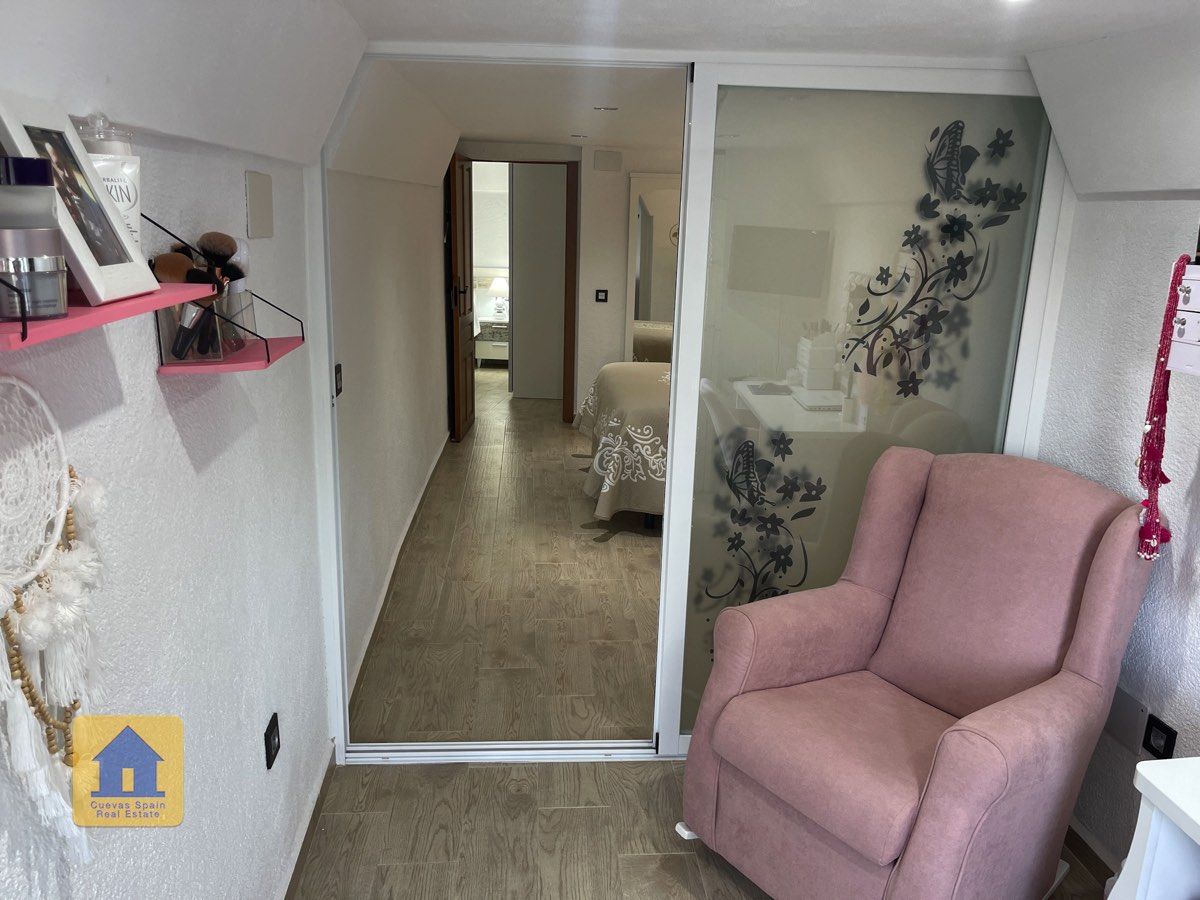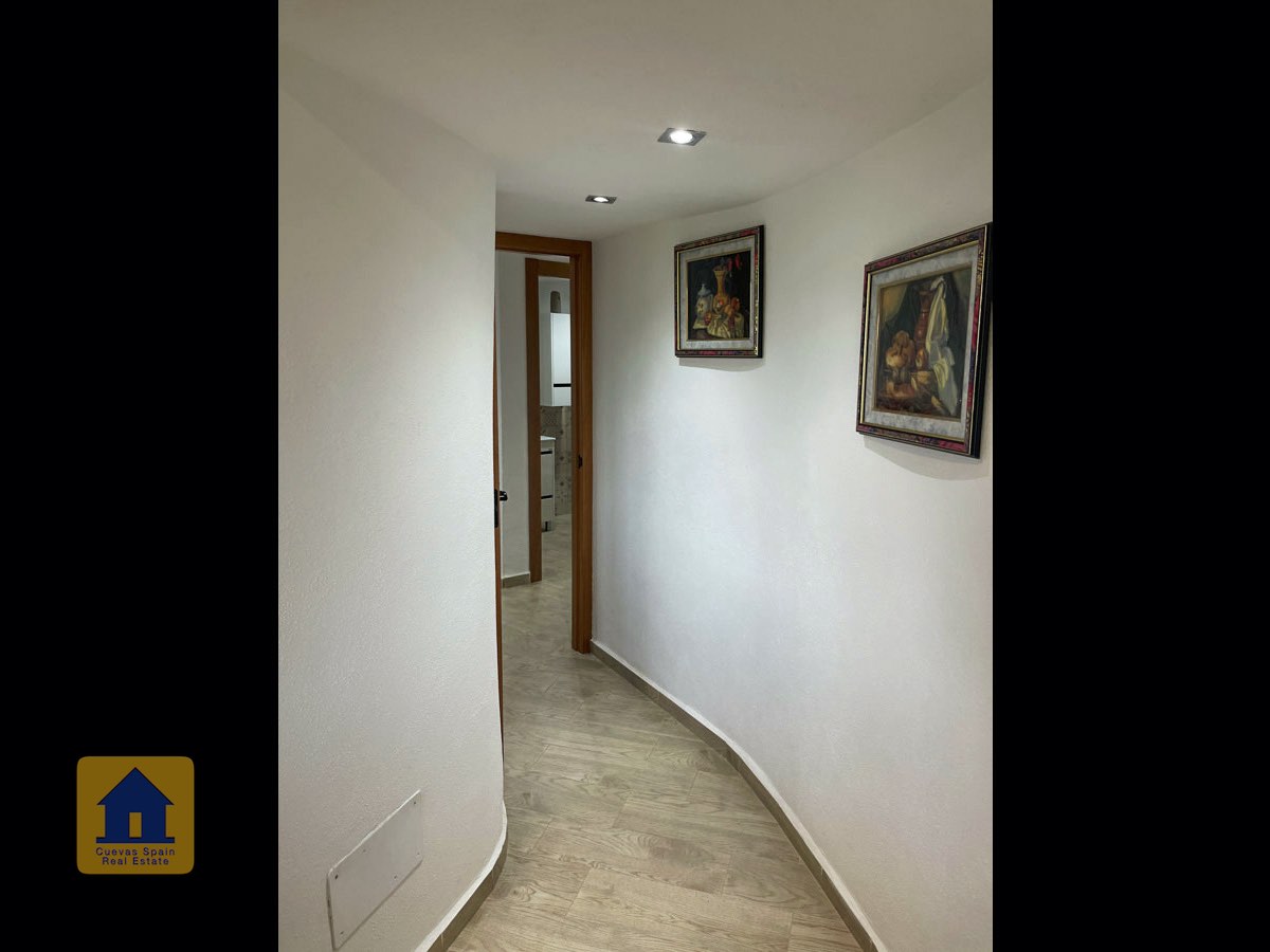 En toda la cueva y toda la zona de construcción se ha cuidado cuidadosamente la iluminación instalada. Las ventanas de la cocina y puertas de vidrio que dan a dos de las terrazas también dejan entrar mucha luz natural. Los suelos son de baldosas de estilo madera clara y los muebles combinan a la perfección con la decoración. (La mesa de comedor de madera no está incluida en la venta).