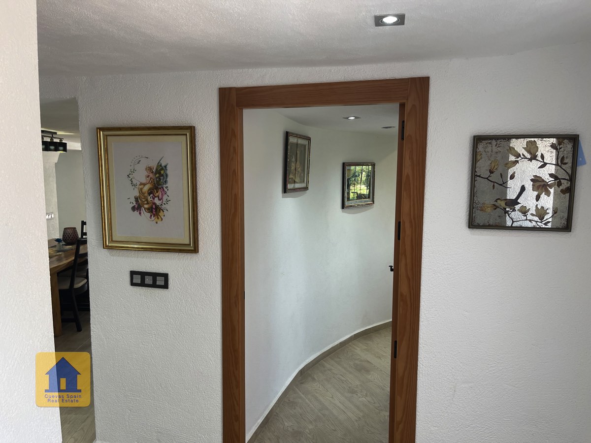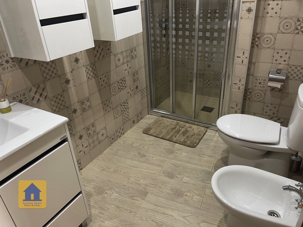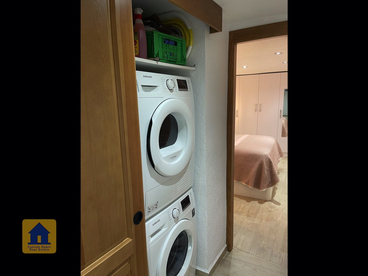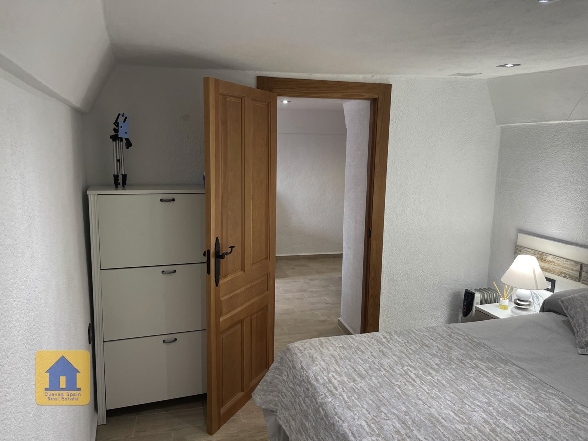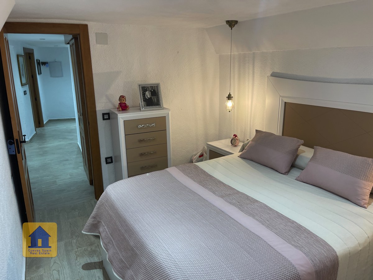 En toda la cueva y toda la zona de construcción se ha cuidado cuidadosamente la iluminación instalada. Las ventanas de la cocina y puertas de vidrio que dan a dos de las terrazas también dejan entrar mucha luz natural. Los suelos son de baldosas de estilo madera clara y los muebles combinan a la perfección con la decoración. (La mesa de comedor de madera no está incluida en la venta).
