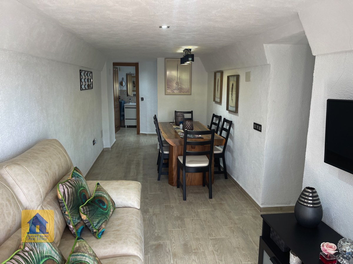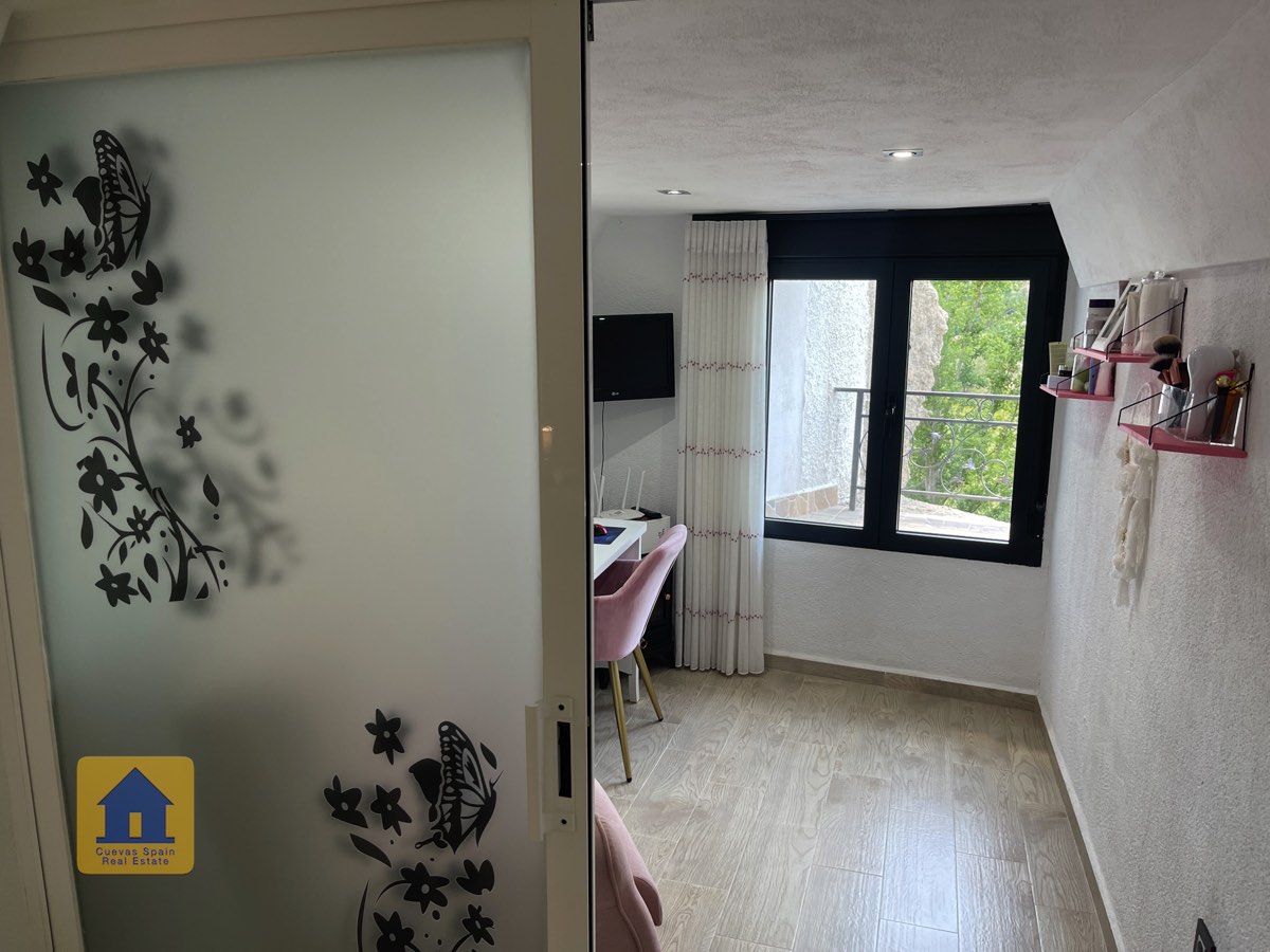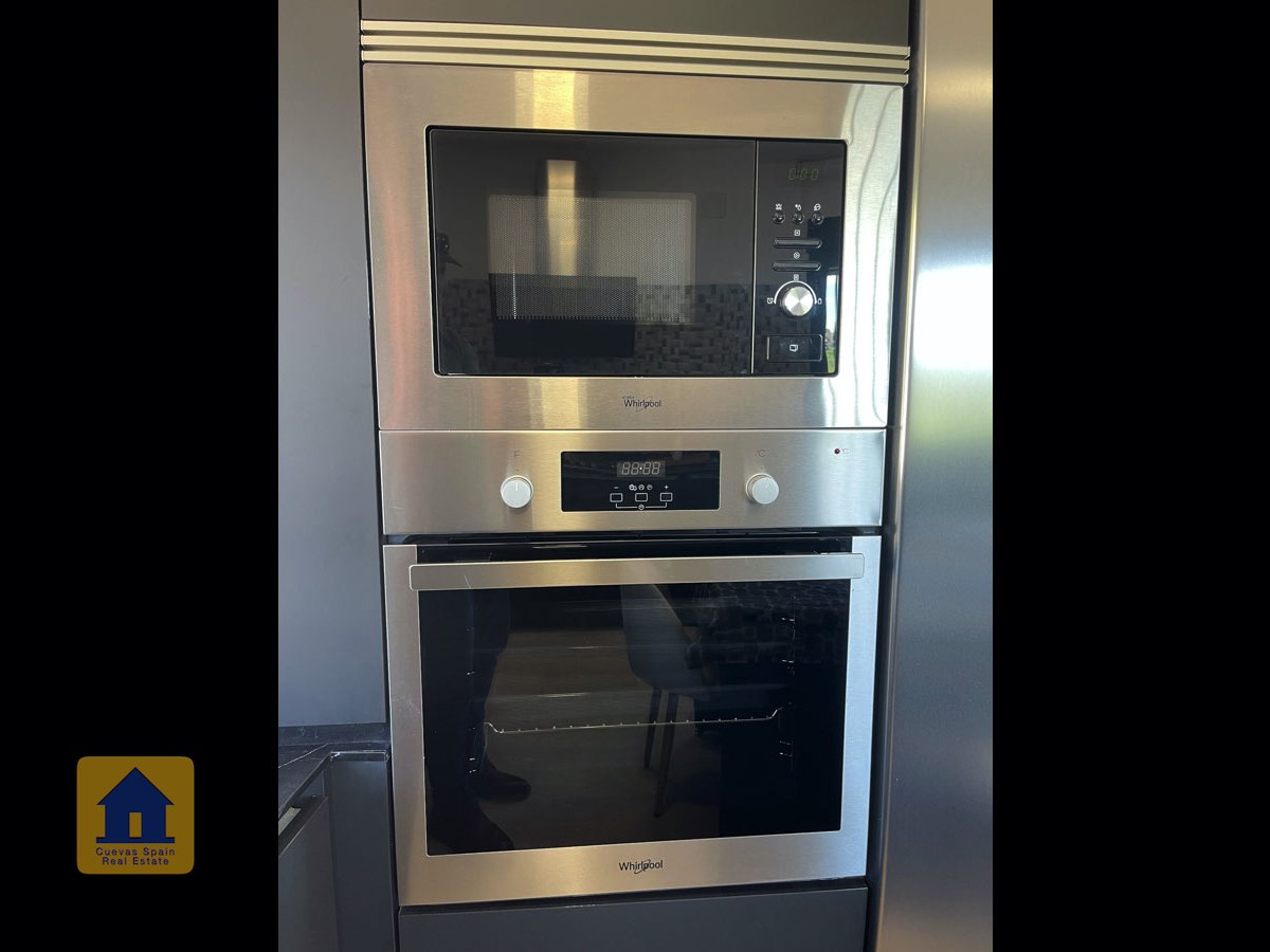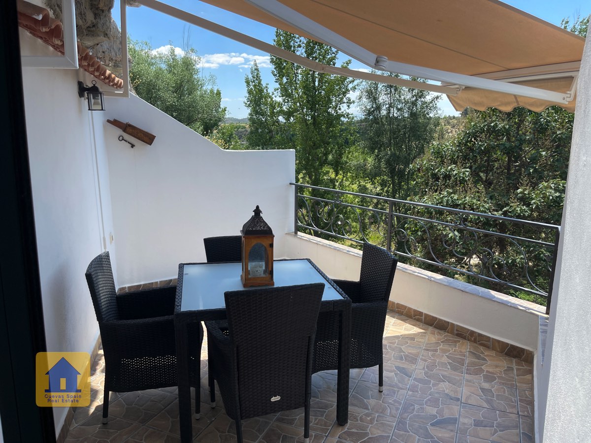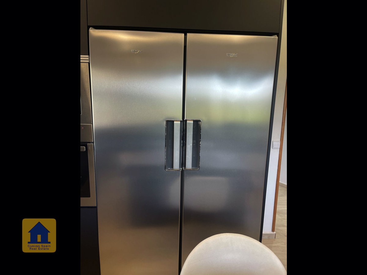 En toda la cueva y toda la zona de construcción se ha cuidado cuidadosamente la iluminación instalada. Las ventanas de la cocina y puertas de vidrio que dan a dos de las terrazas también dejan entrar mucha luz natural. Los suelos son de baldosas de estilo madera clara y los muebles combinan a la perfección con la decoración. (La mesa de comedor de madera no está incluida en la venta).
