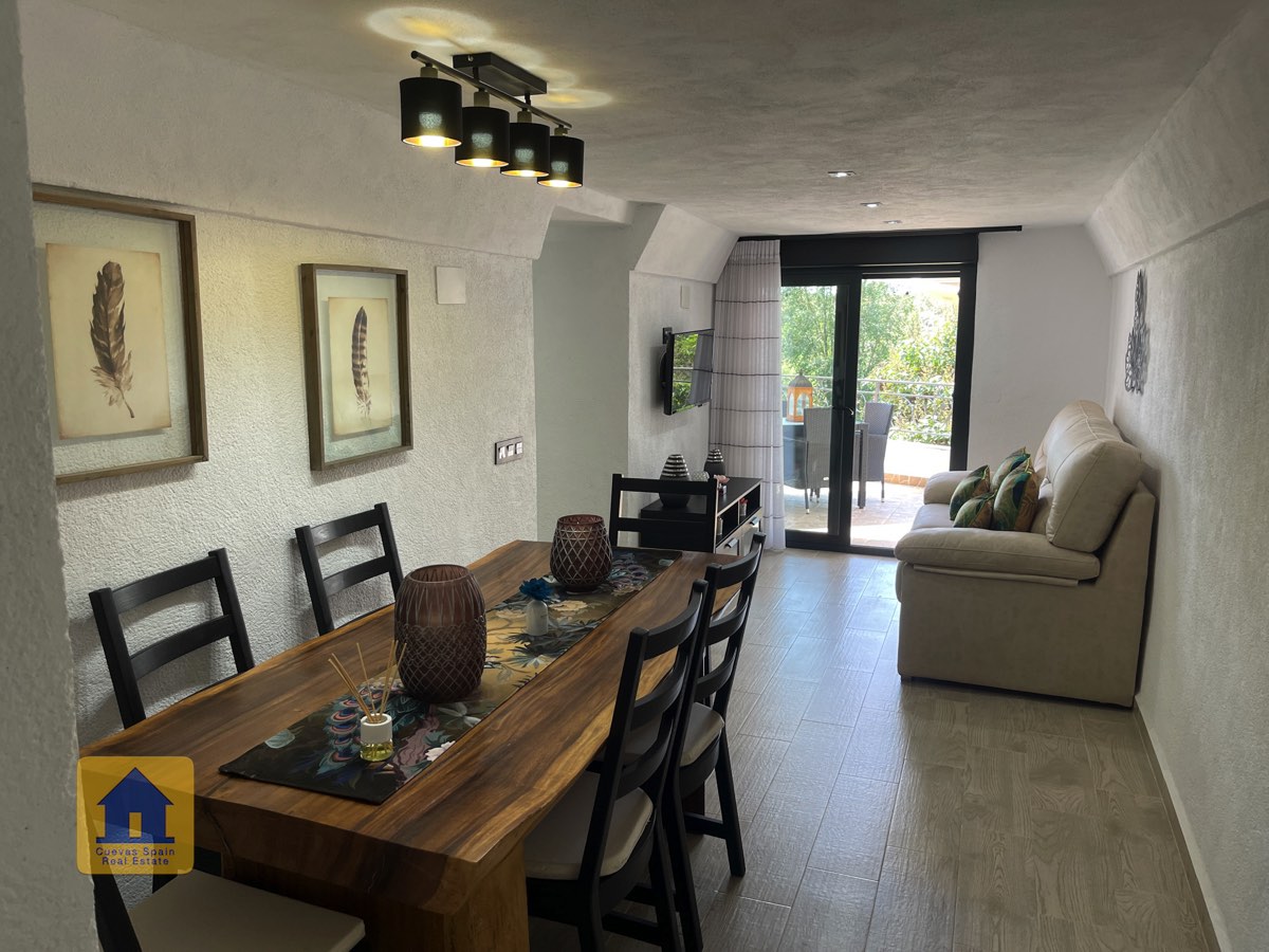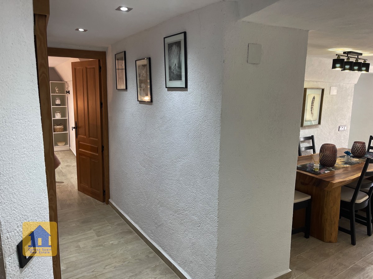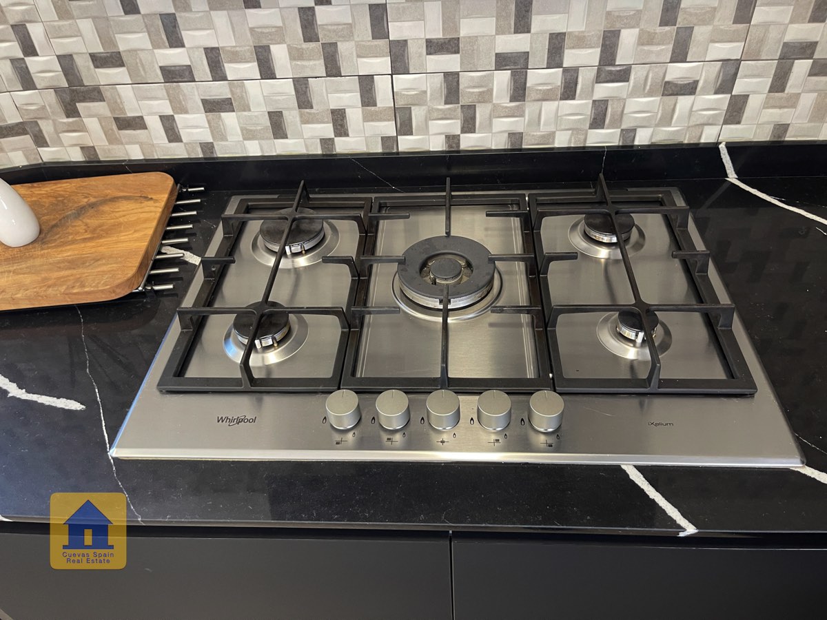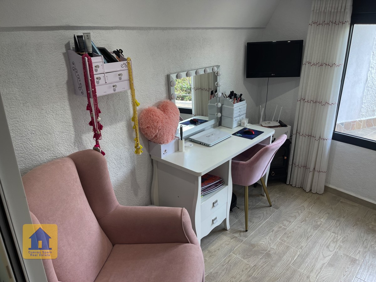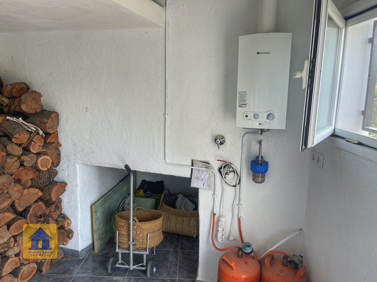 En toda la cueva y toda la zona de construcción se ha cuidado cuidadosamente la iluminación instalada. Las ventanas de la cocina y puertas de vidrio que dan a dos de las terrazas también dejan entrar mucha luz natural. Los suelos son de baldosas de estilo madera clara y los muebles combinan a la perfección con la decoración. (La mesa de comedor de madera no está incluida en la venta).