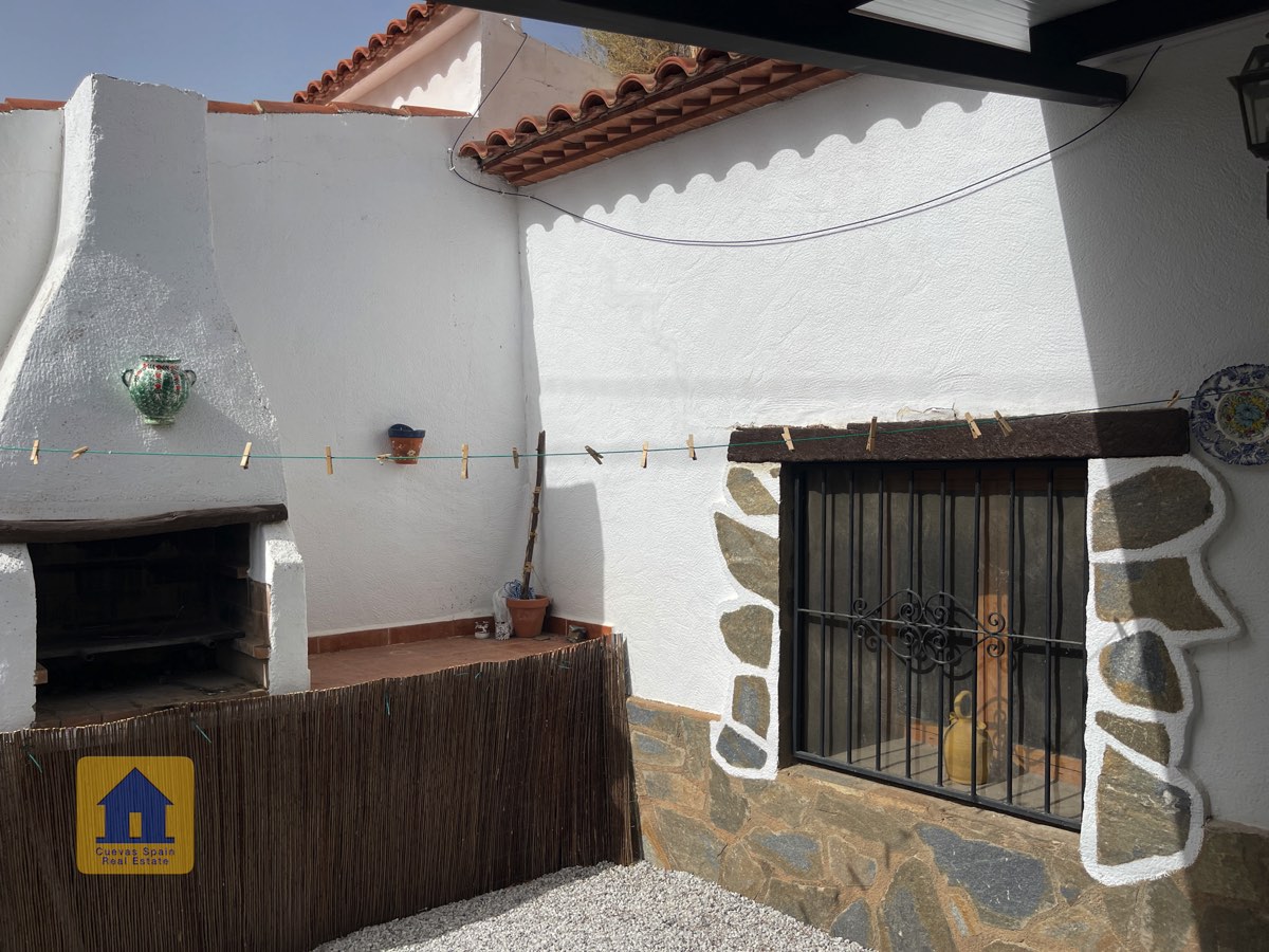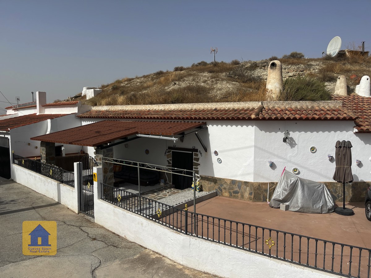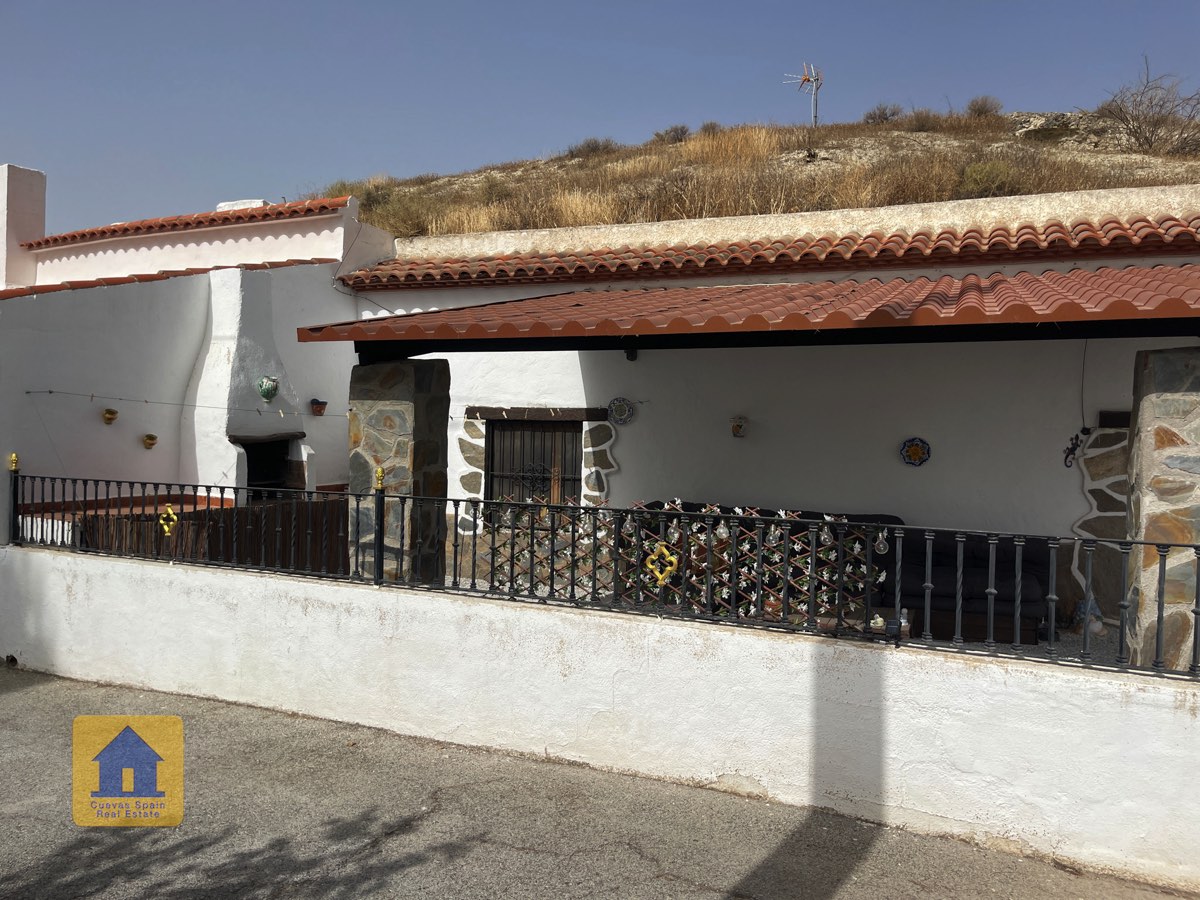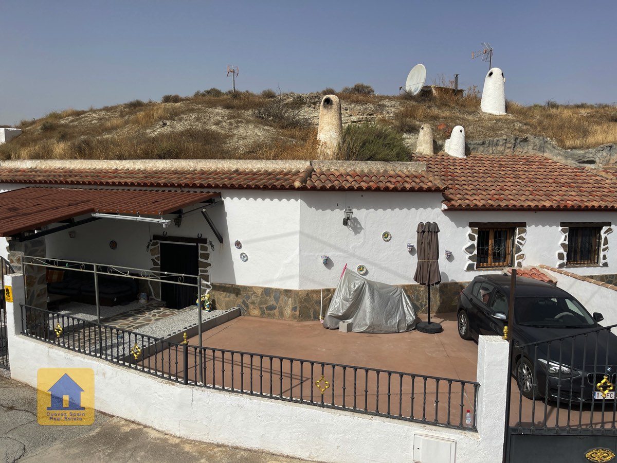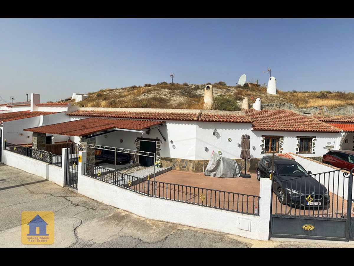 Preciosa y espaciosa casa cueva de 3 dormitorios situada en la aldea tranquila de Los Olivos. La propiedad está orientada al este-sureste con vistas a las Badlands. Cuenta con un amplio patio cerrado con una gran pérgola nueva, construida con pilares de piedra incrustada y techo de tejas. Bajo la pérgola se encuentra una cómoda zona de estar para relajarse al aire libre. Hay una barbacoa de obra y espacio para aparcar.