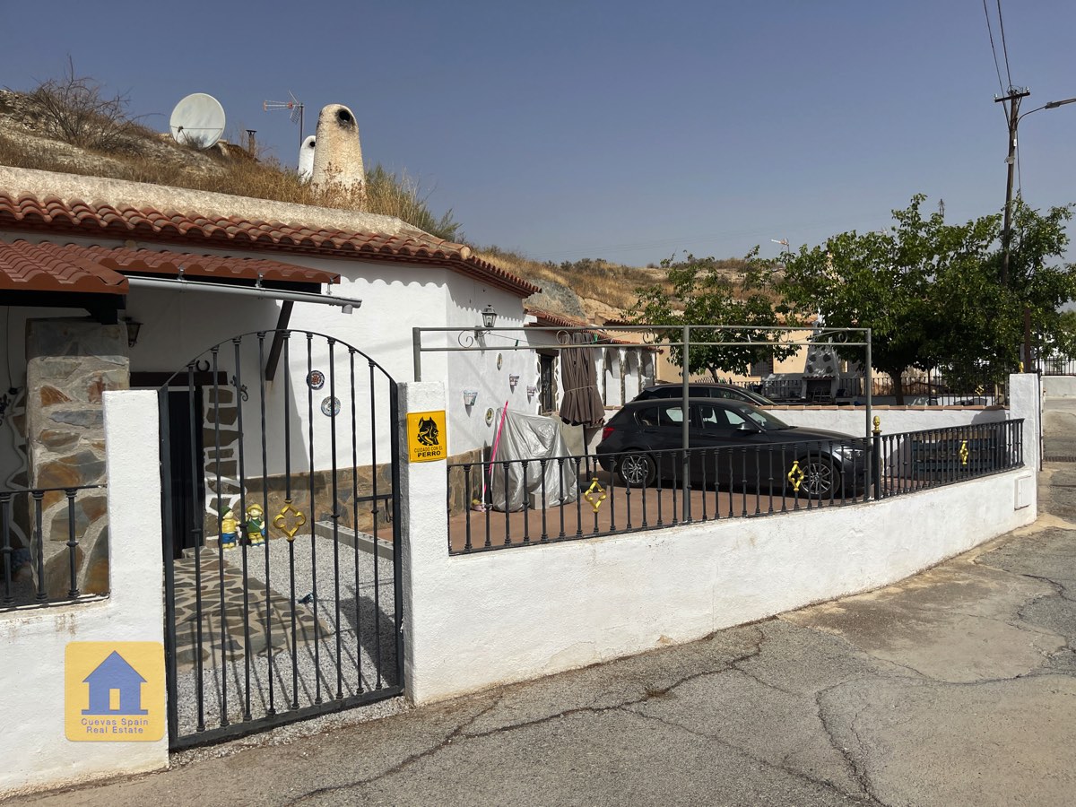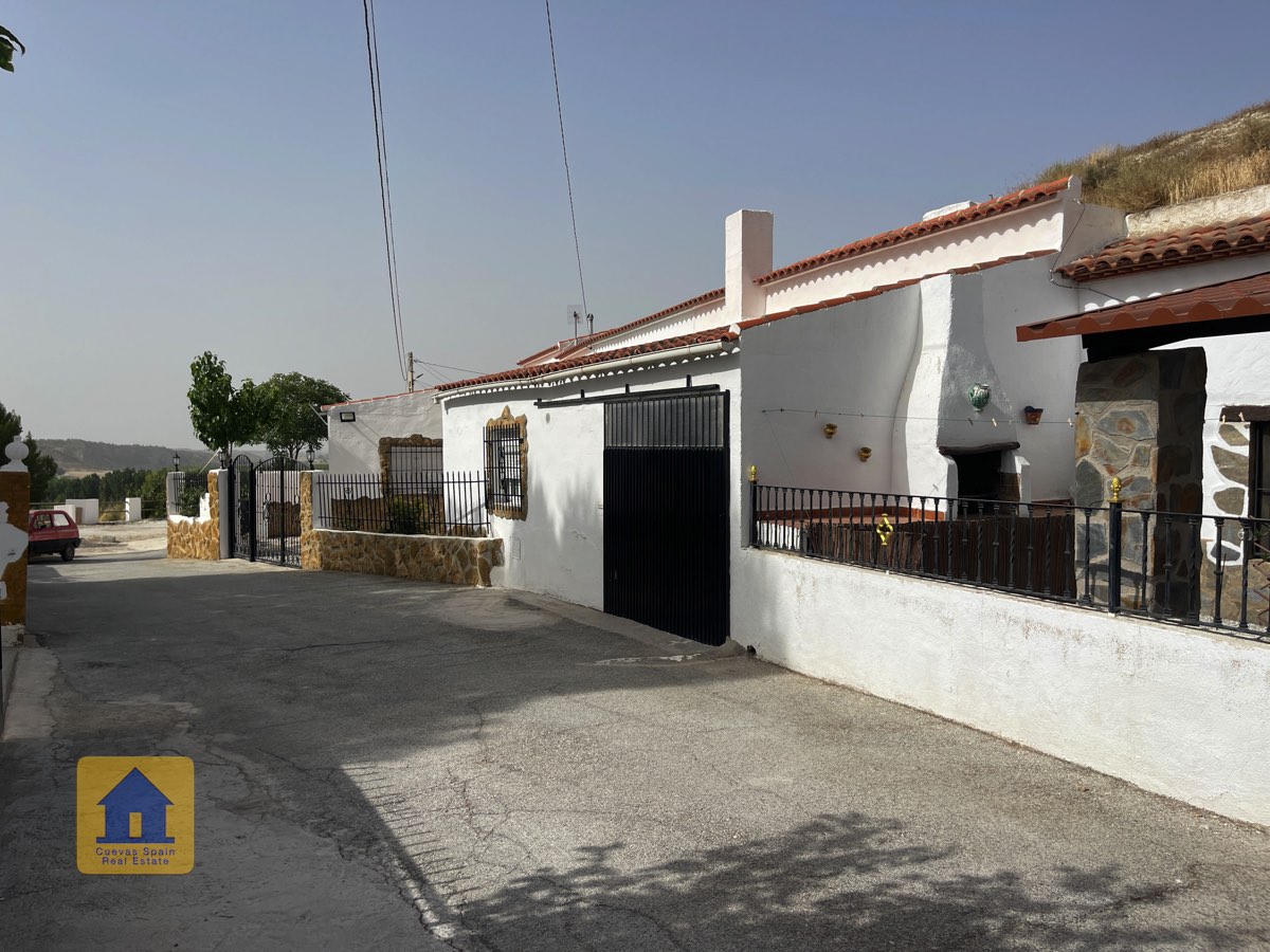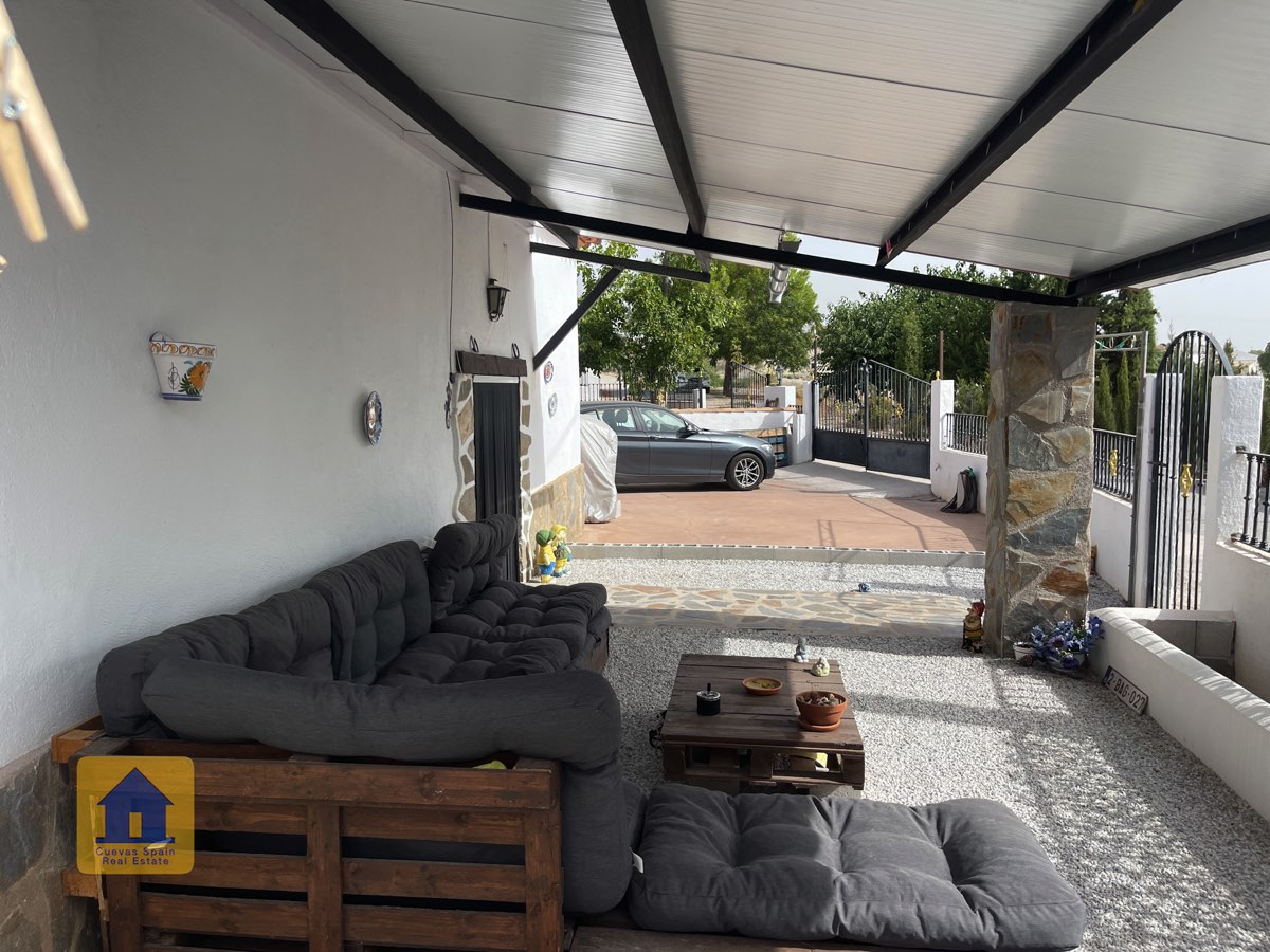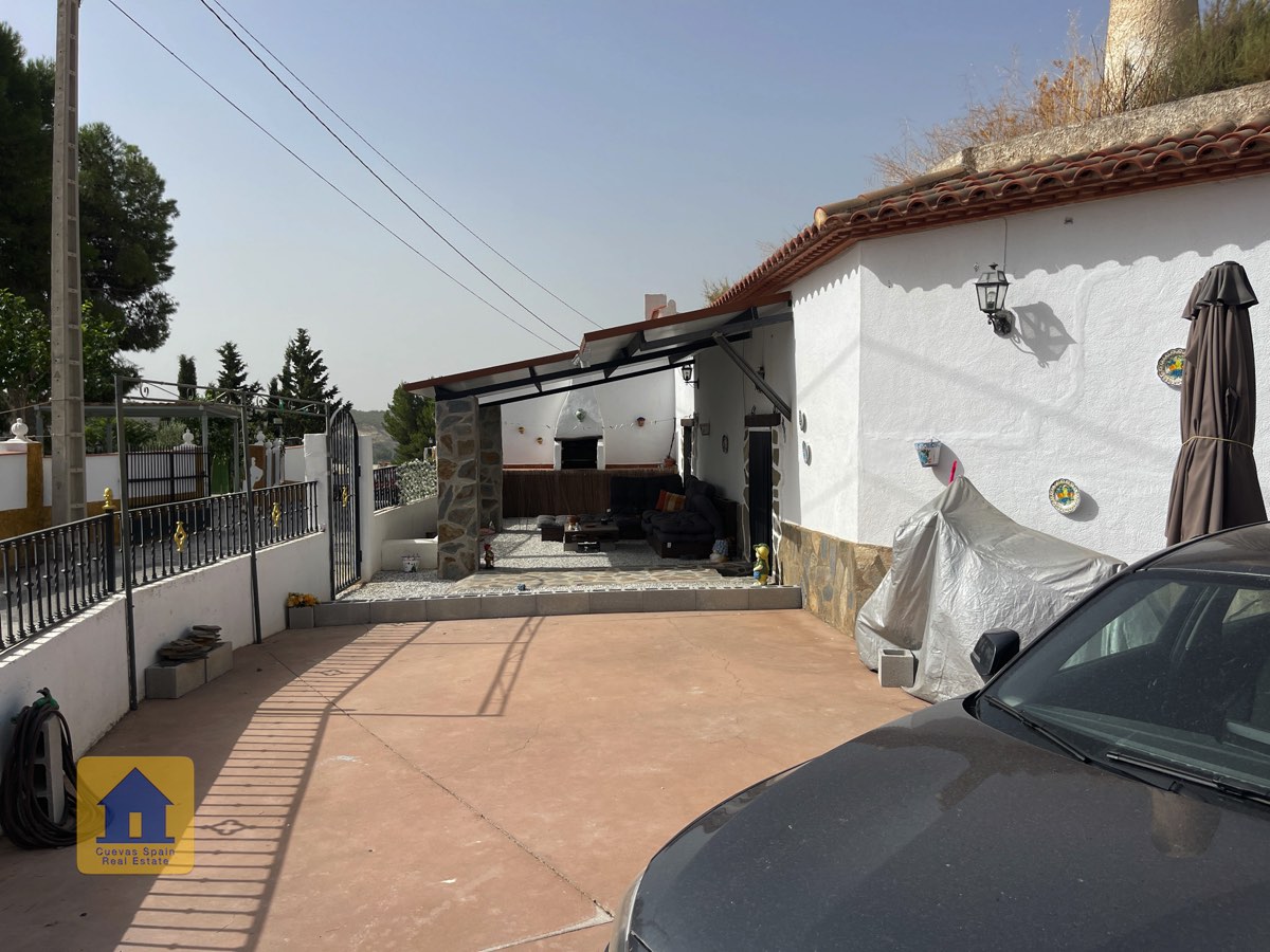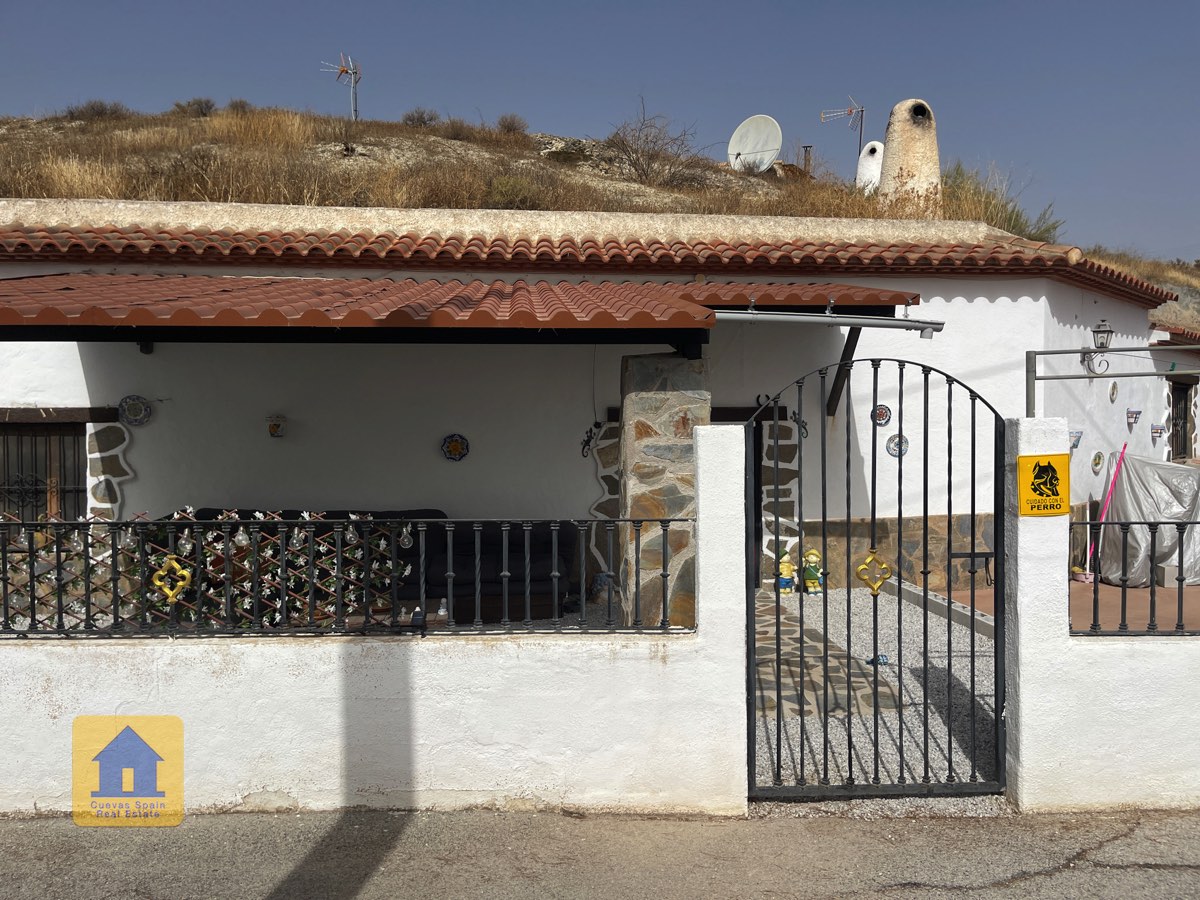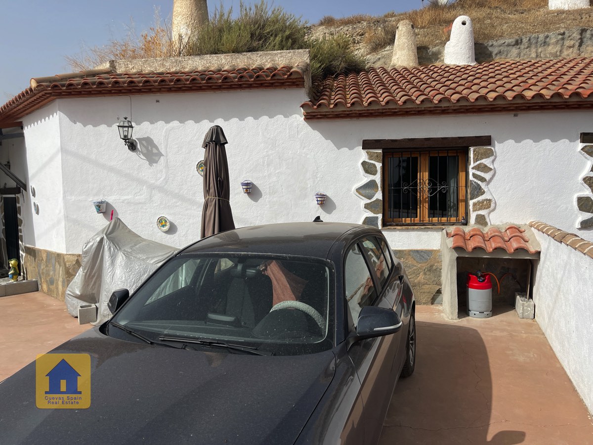 Preciosa y espaciosa casa cueva de 3 dormitorios situada en la aldea tranquila de Los Olivos. La propiedad está orientada al este-sureste con vistas a las Badlands. Cuenta con un amplio patio cerrado con una gran pérgola nueva, construida con pilares de piedra incrustada y techo de tejas. Bajo la pérgola se encuentra una cómoda zona de estar para relajarse al aire libre. Hay una barbacoa de obra y espacio para aparcar.