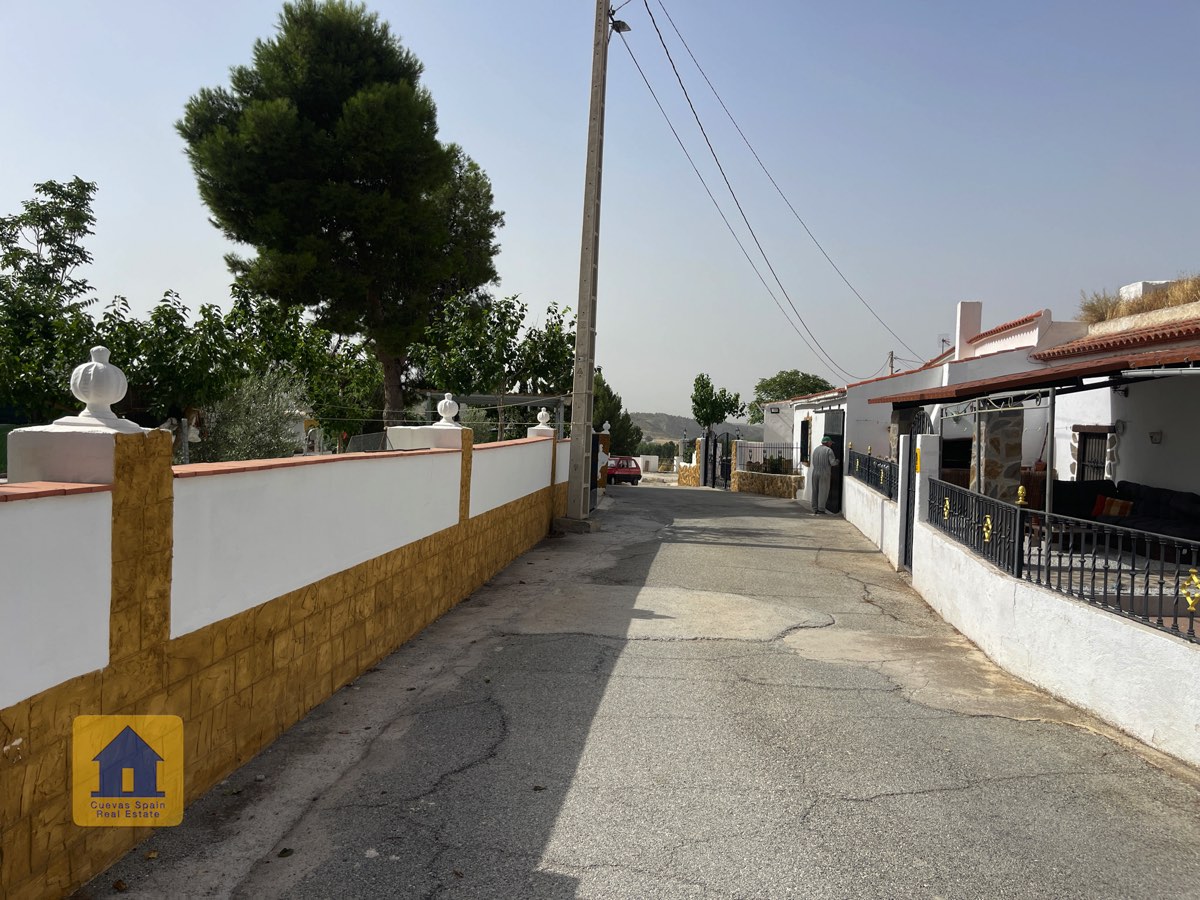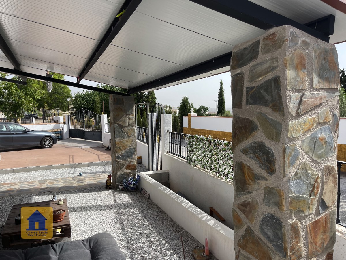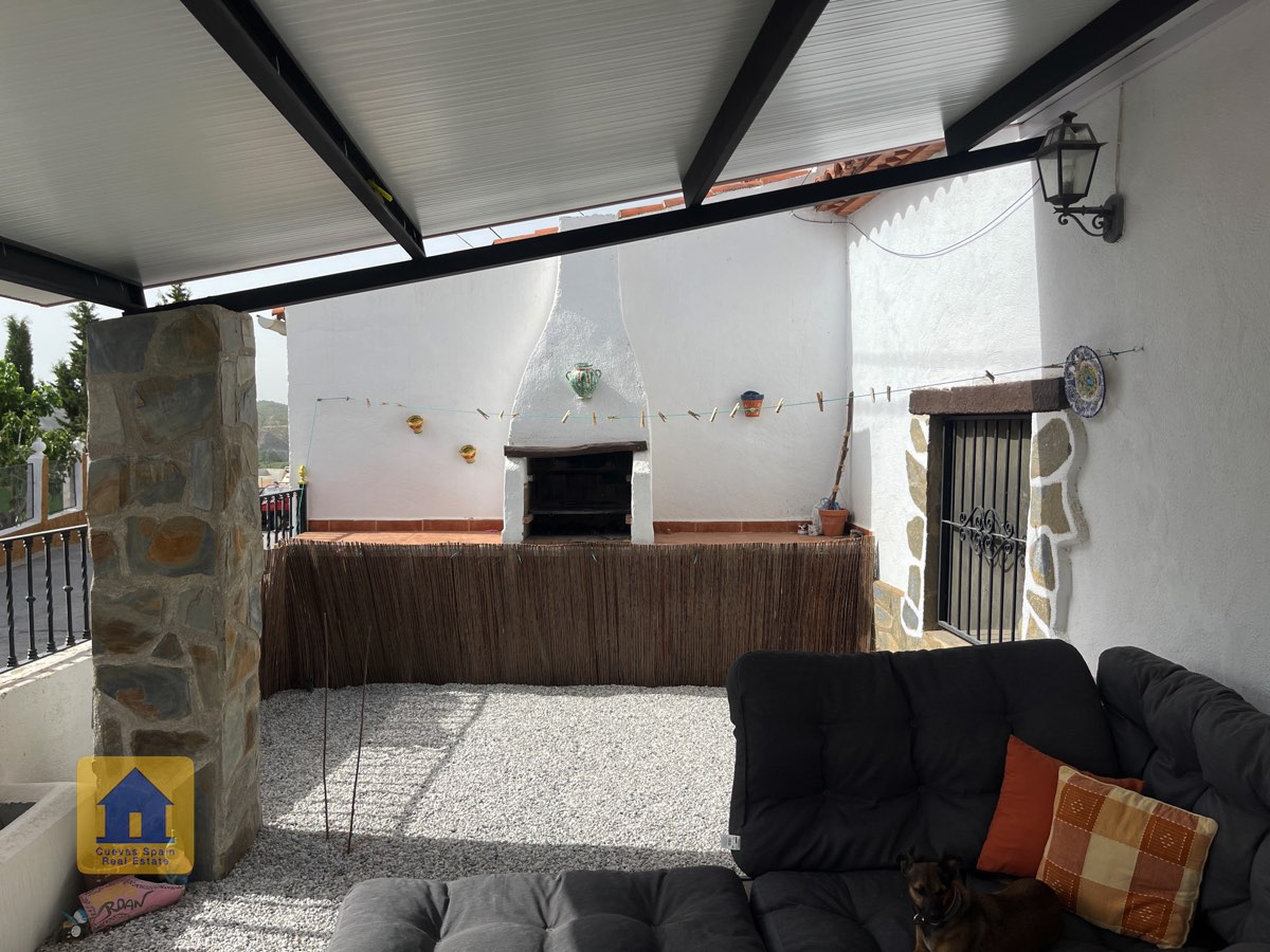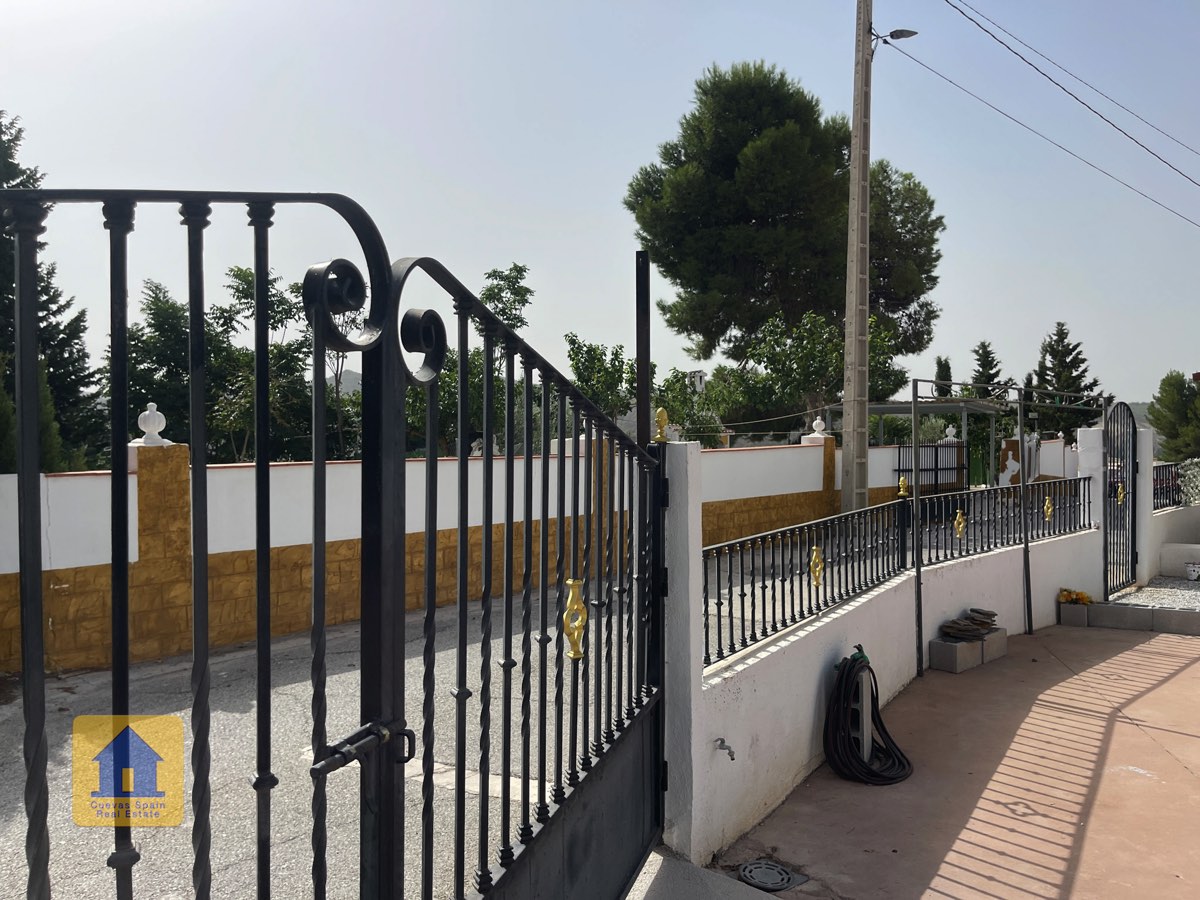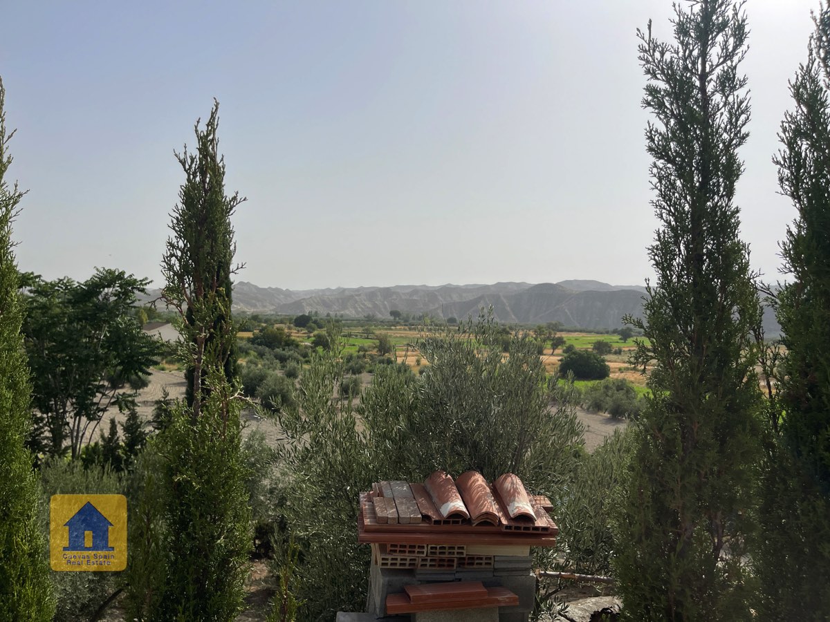 Preciosa y espaciosa casa cueva de 3 dormitorios situada en la aldea tranquila de Los Olivos. La propiedad está orientada al este-sureste con vistas a las Badlands. Cuenta con un amplio patio cerrado con una gran pérgola nueva, construida con pilares de piedra incrustada y techo de tejas. Bajo la pérgola se encuentra una cómoda zona de estar para relajarse al aire libre. Hay una barbacoa de obra y espacio para aparcar.