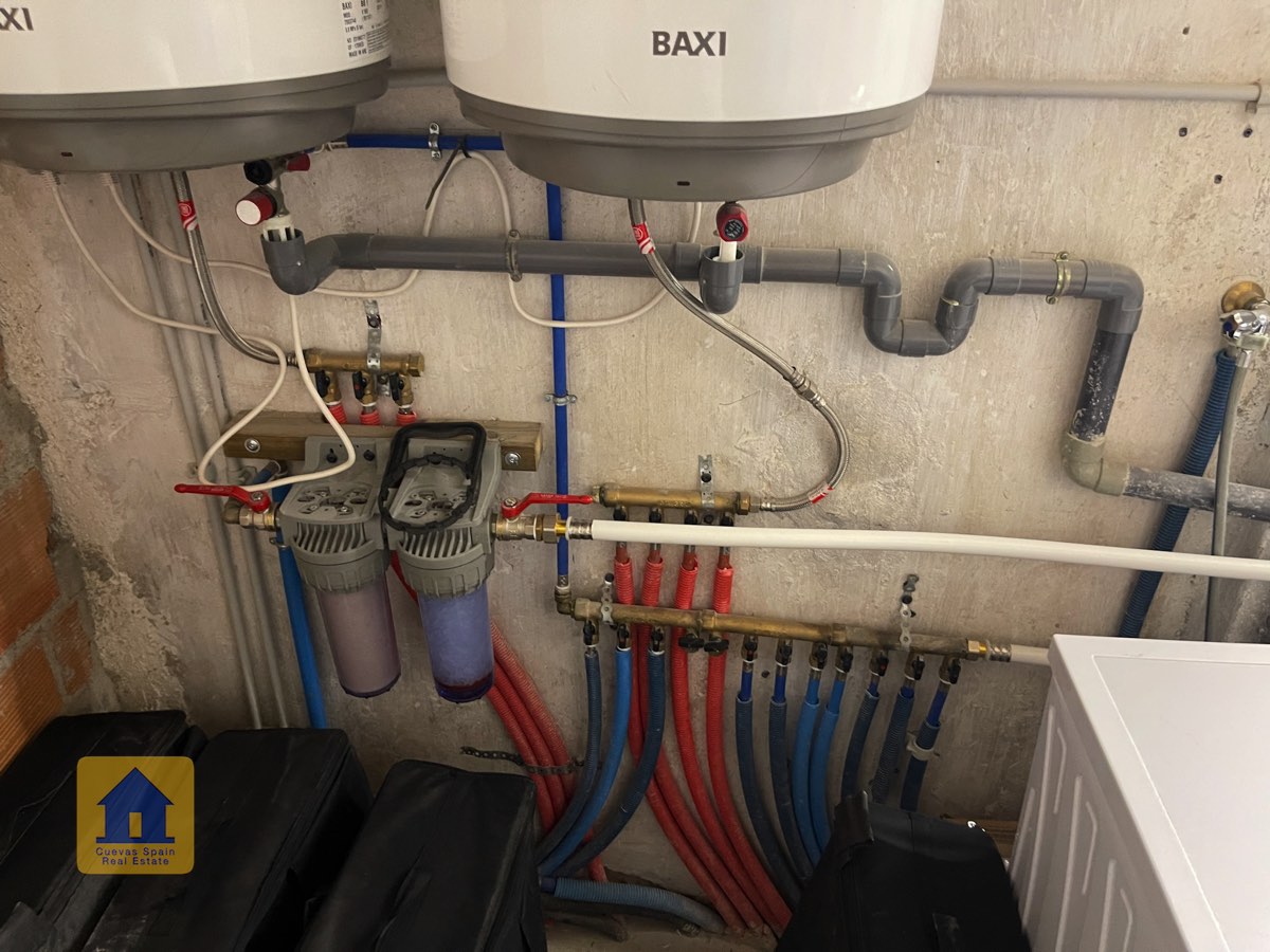 La buanderie abrite le chauffe-eau avec commandes individuelles reliées à la cuisine et à chacune des salles de bains. Dans la buanderie on trouve aussi trois filtres à eau: charbon actif, sable et adoucisseur.