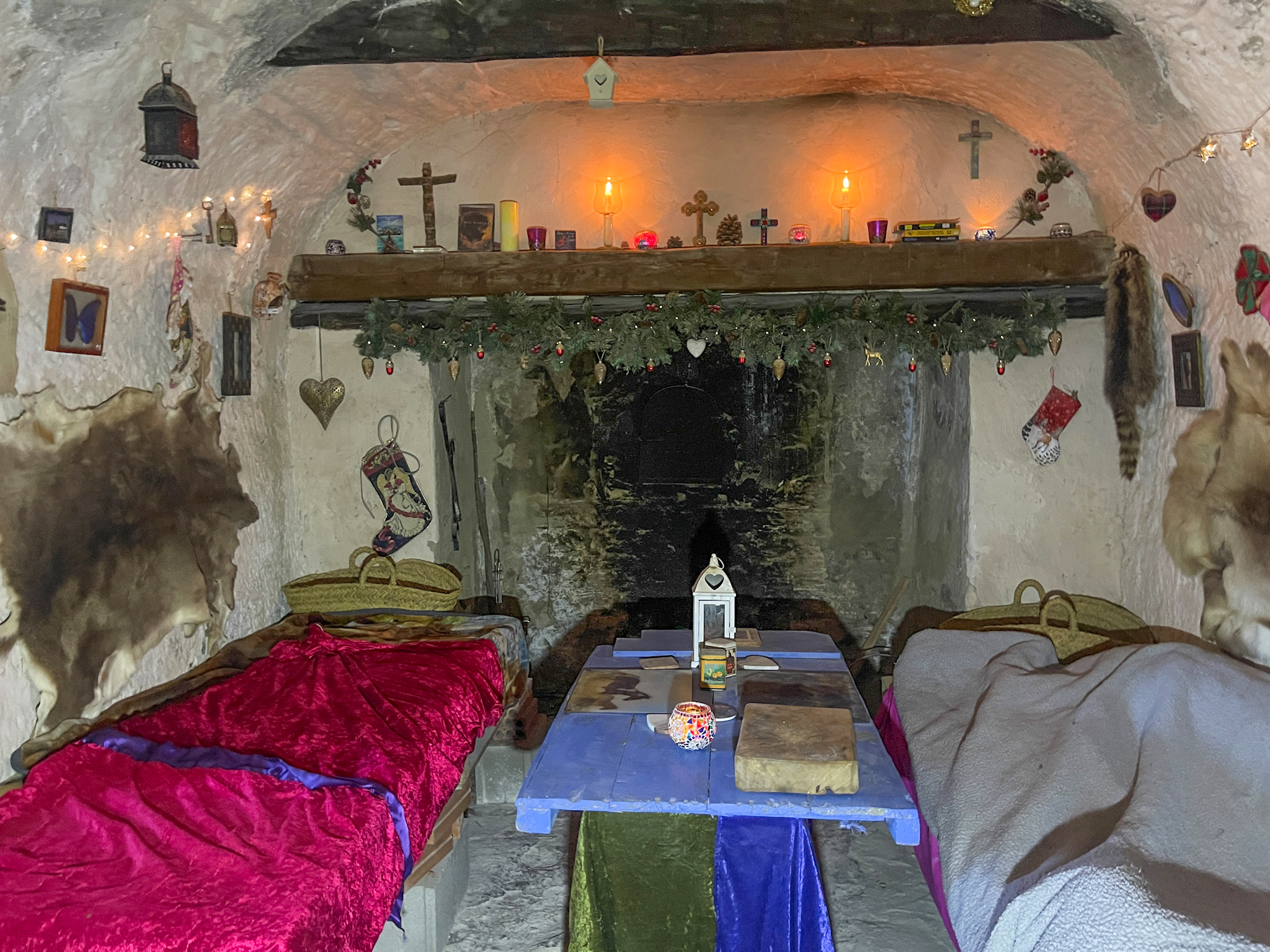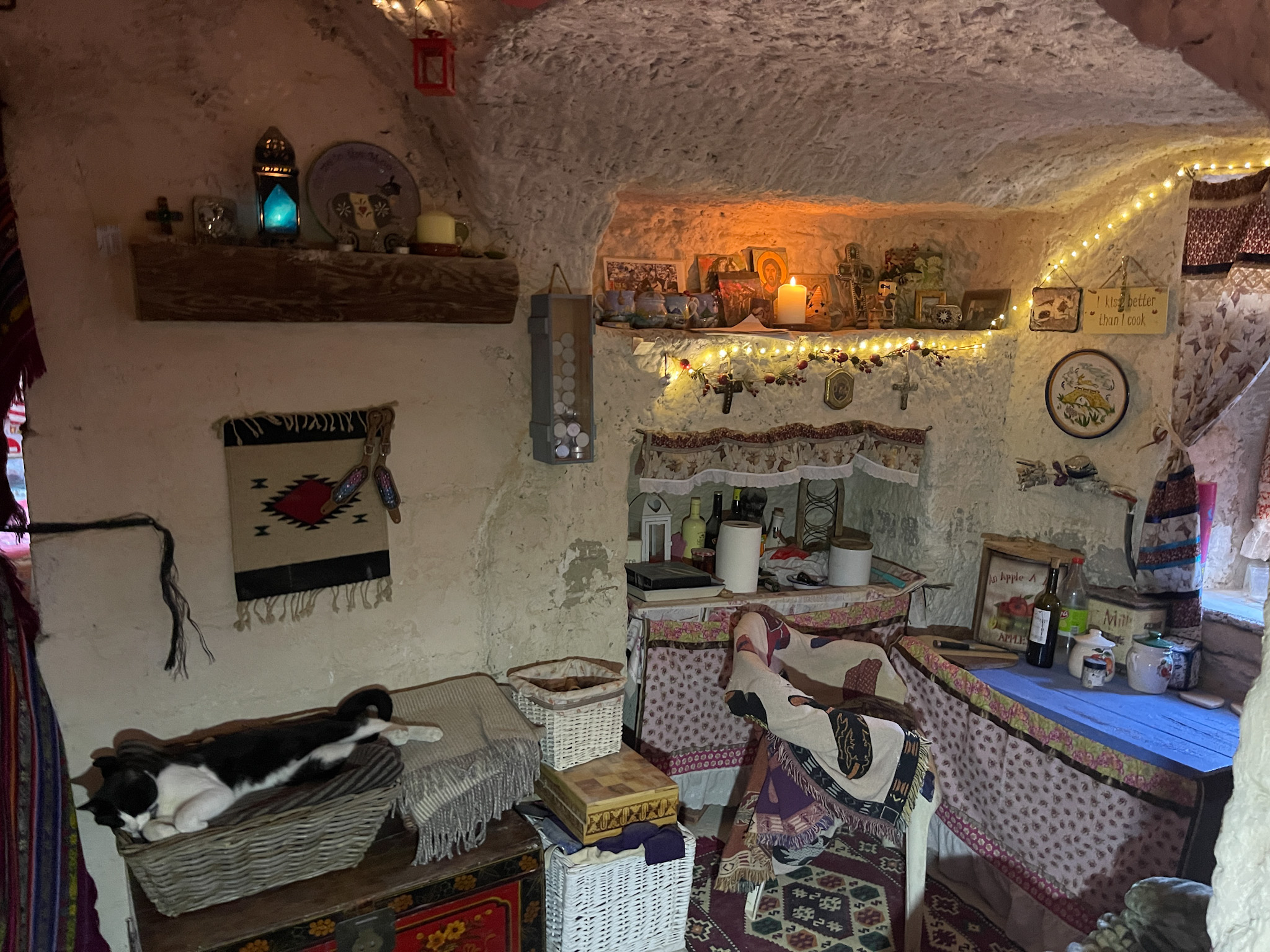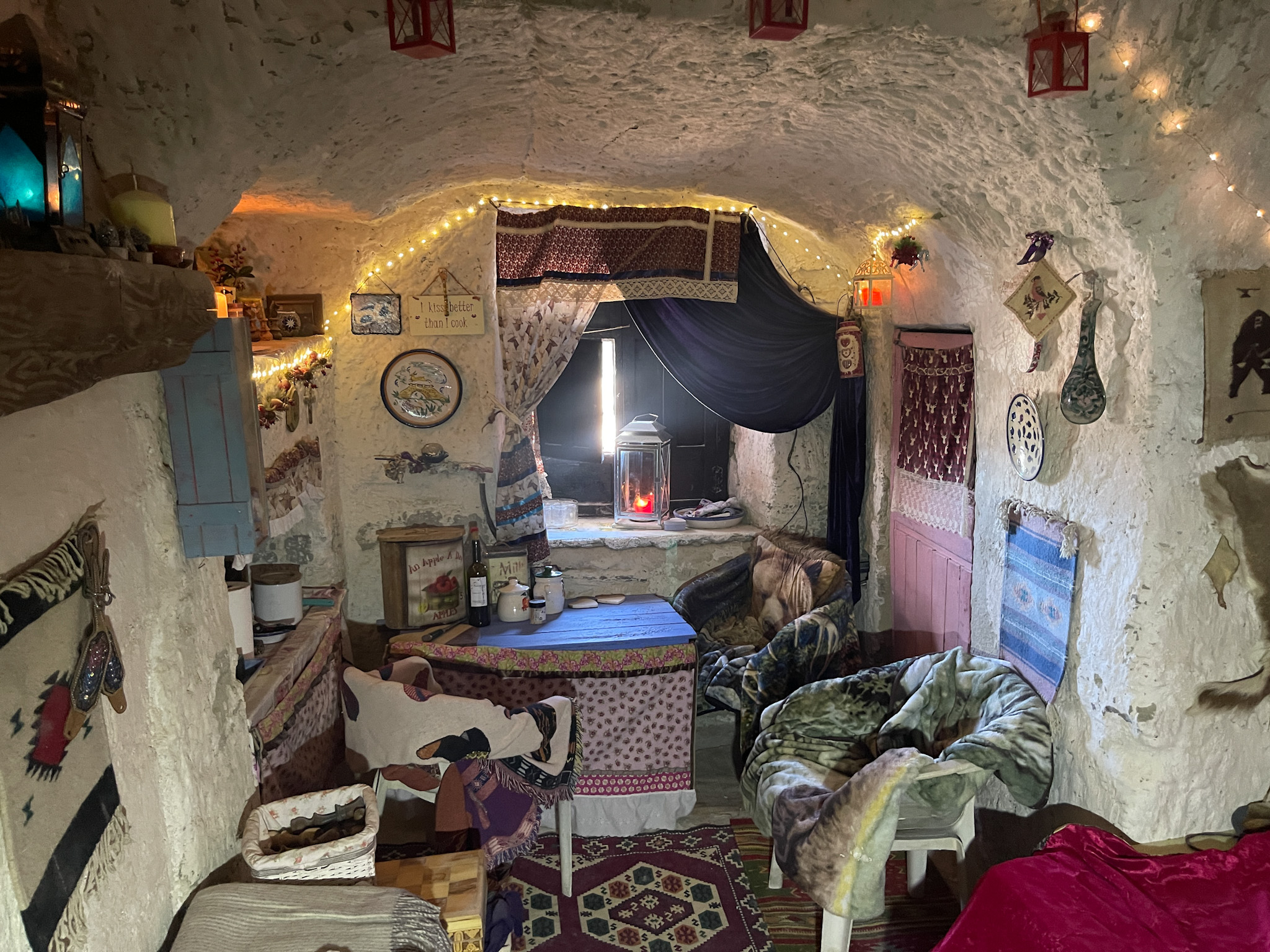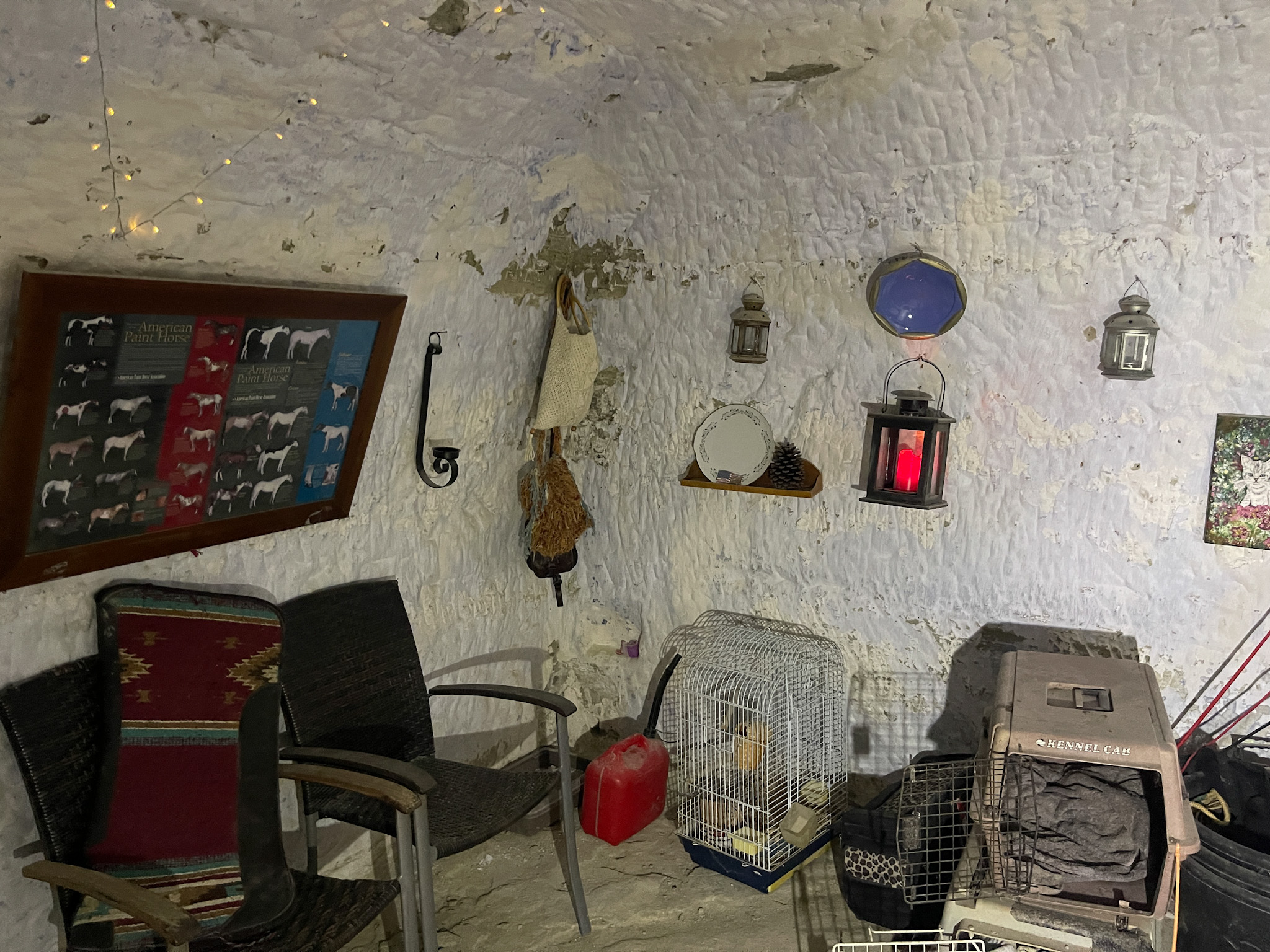 Les deux grottes sont conçues comme des logements indépendants avec des cours privées, car elles sont séparées par un mur de briques.