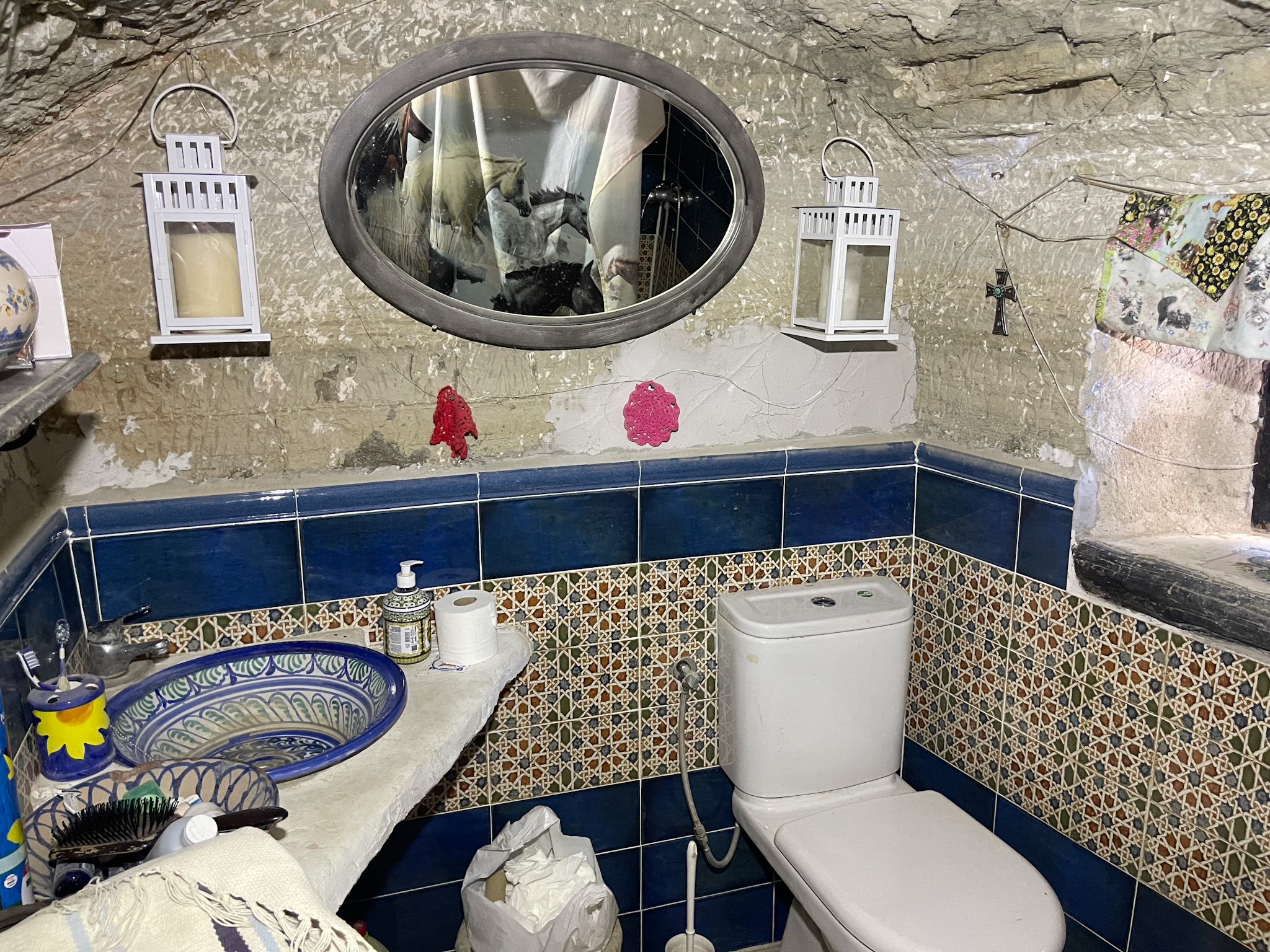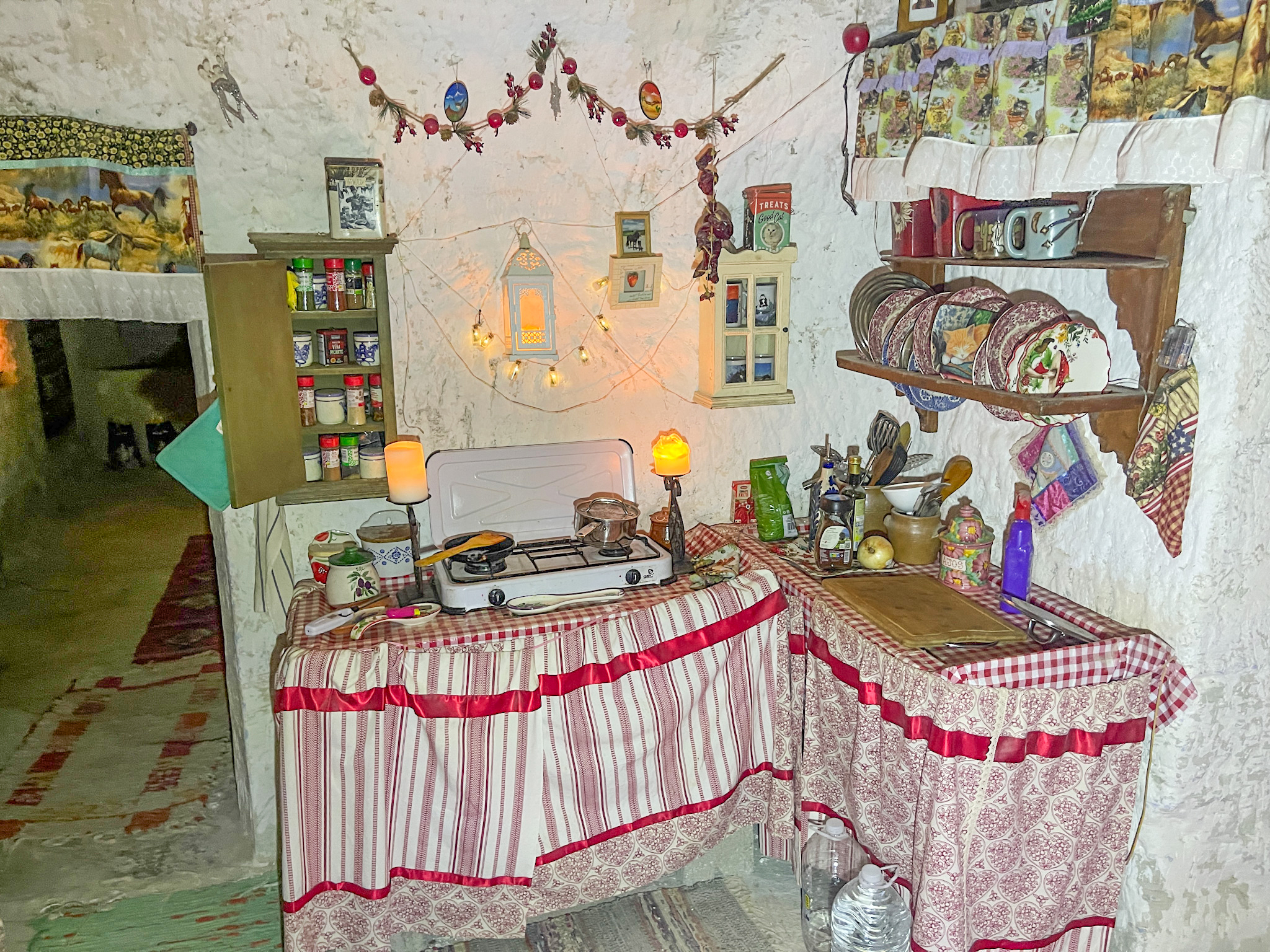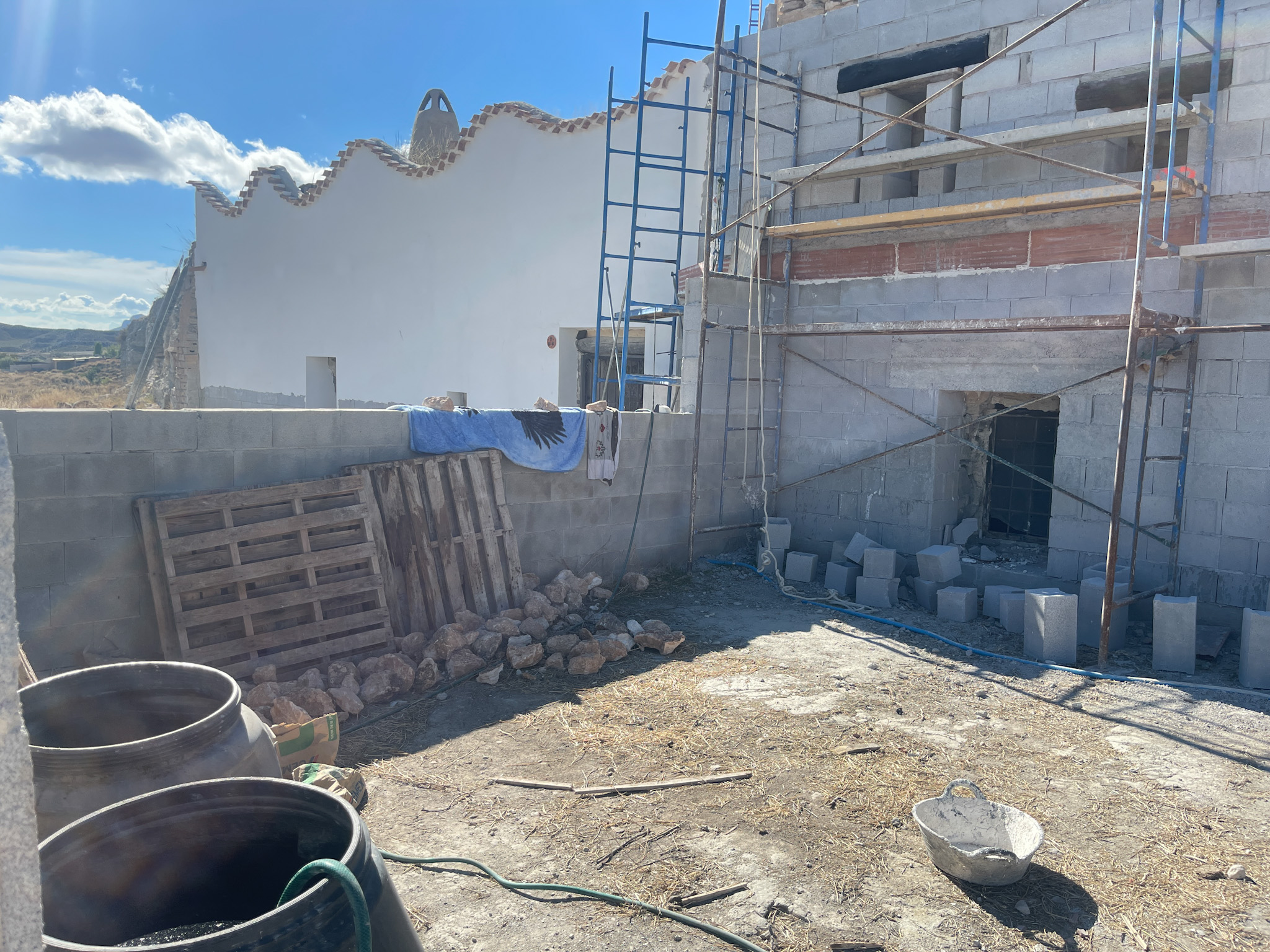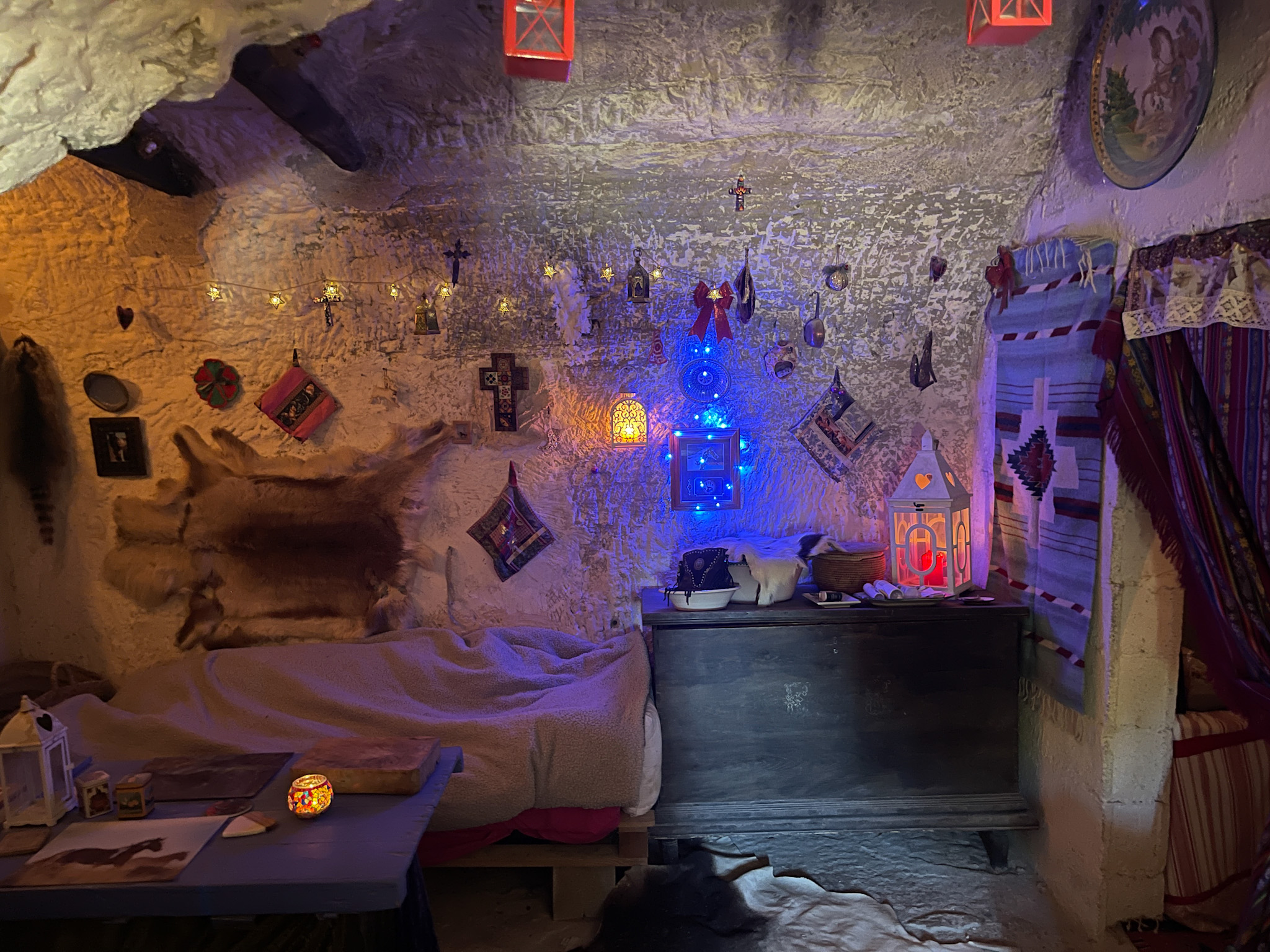 Les deux grottes sont conçues comme des logements indépendants avec des cours privées, car elles sont séparées par un mur de briques.