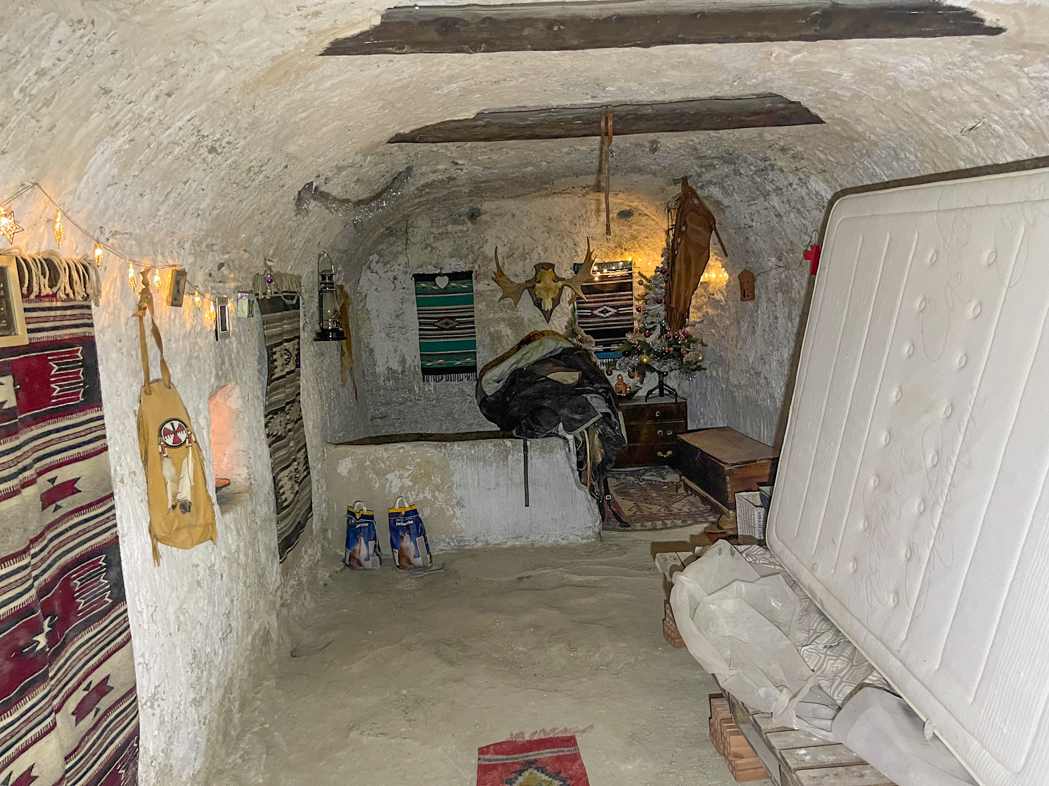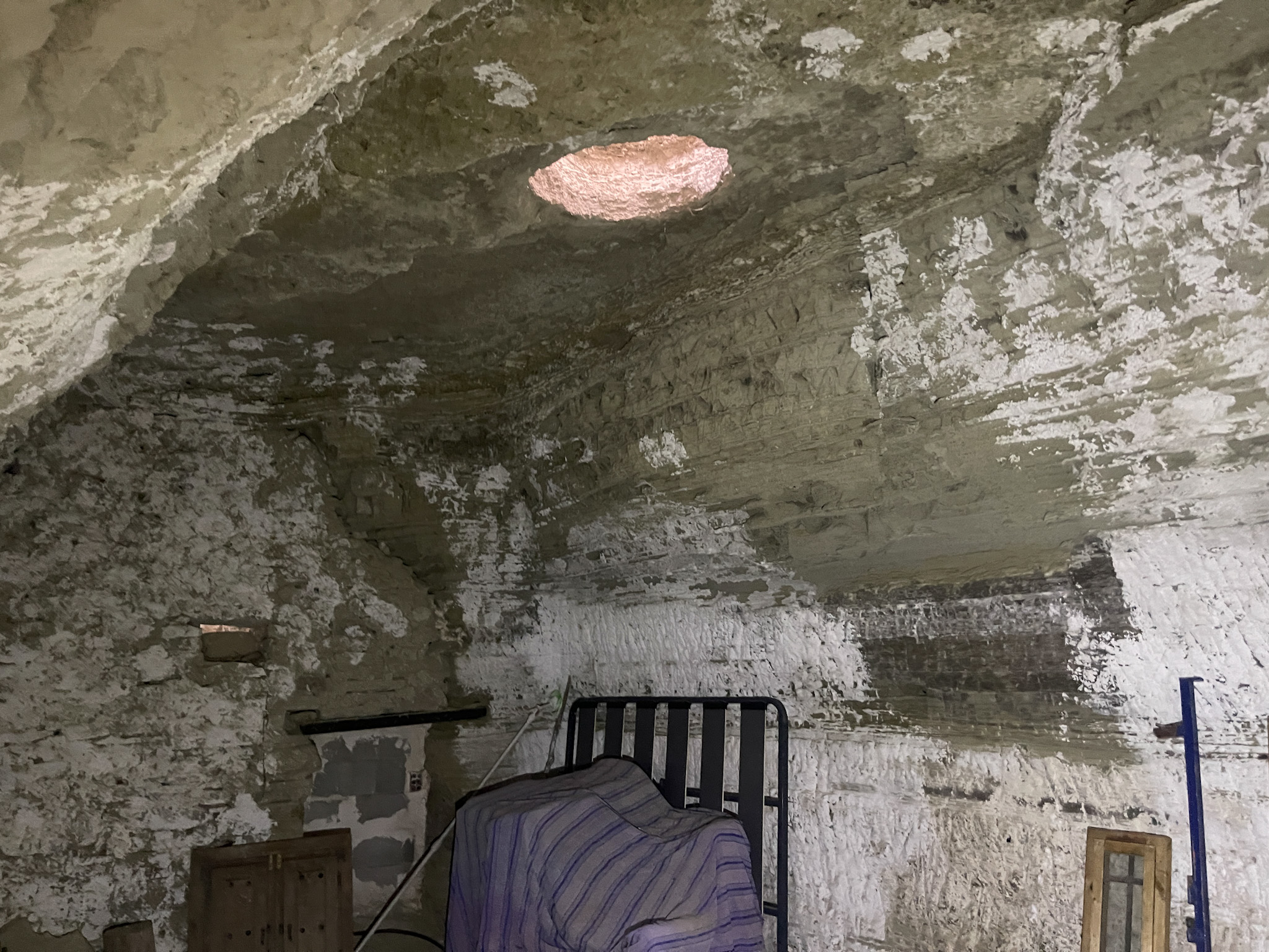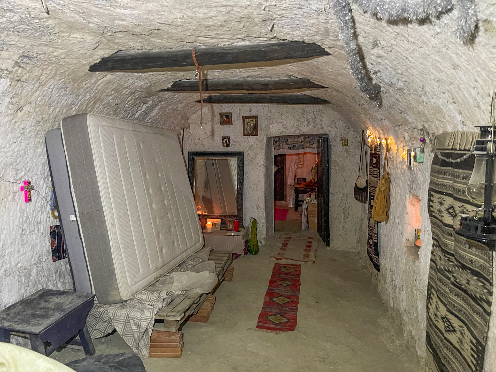 La première maison troglodyte dispose de deux accès indépendants : l'un mène à une pièce unique et l'autre donne accès à la zone principale, qui s'ouvre sur un vaste espace initialement prévu comme cuisine-salle à manger.