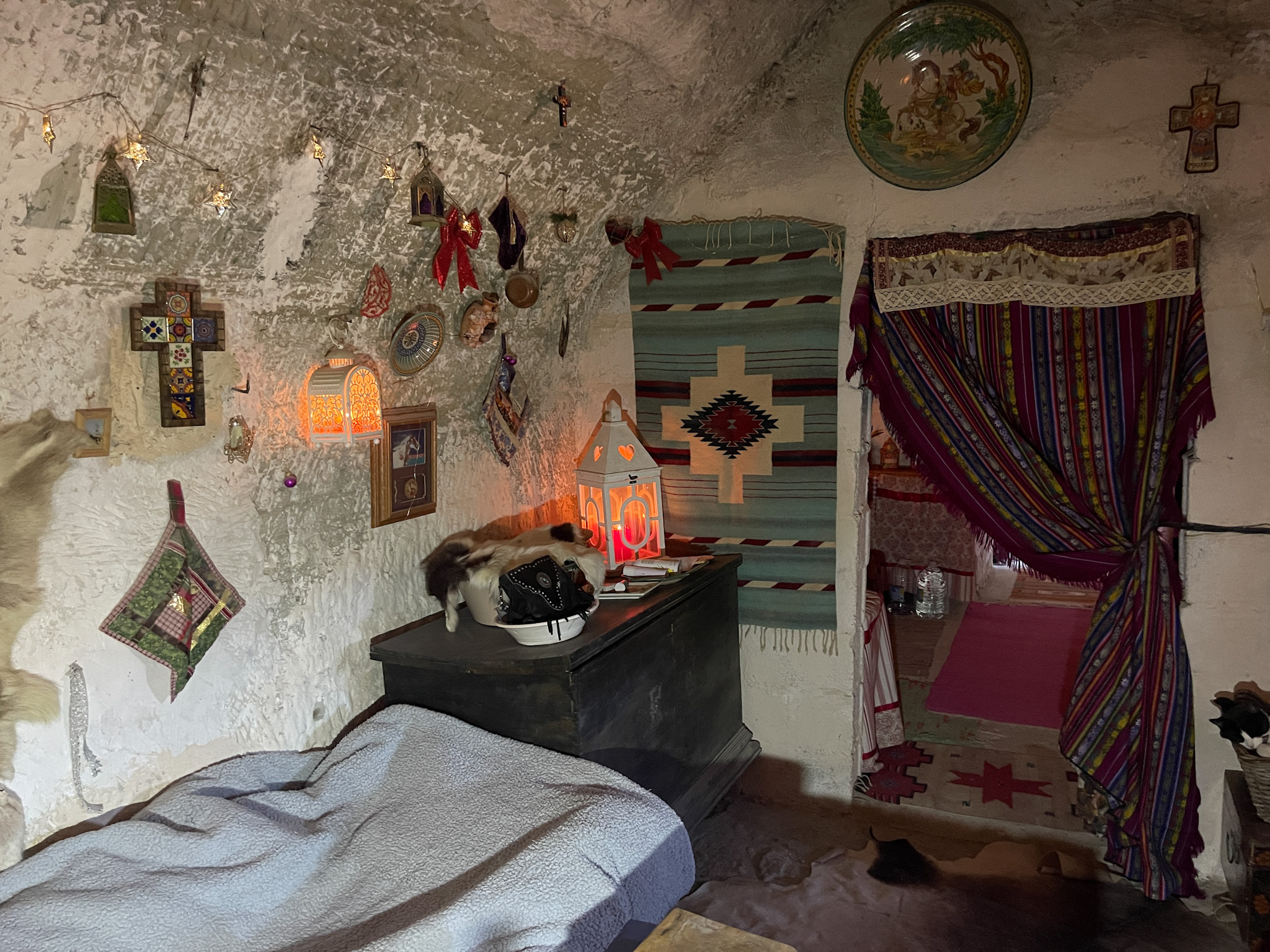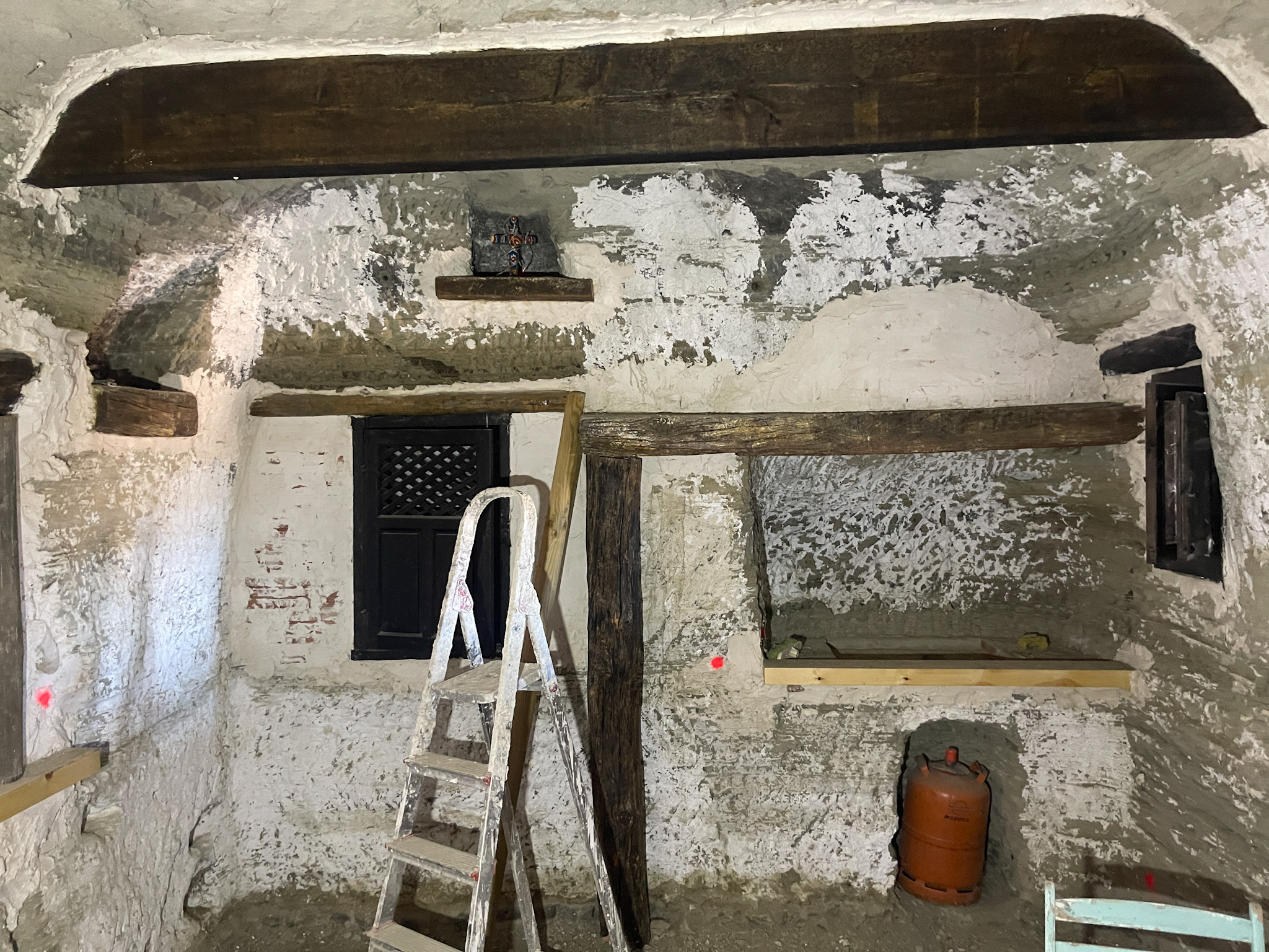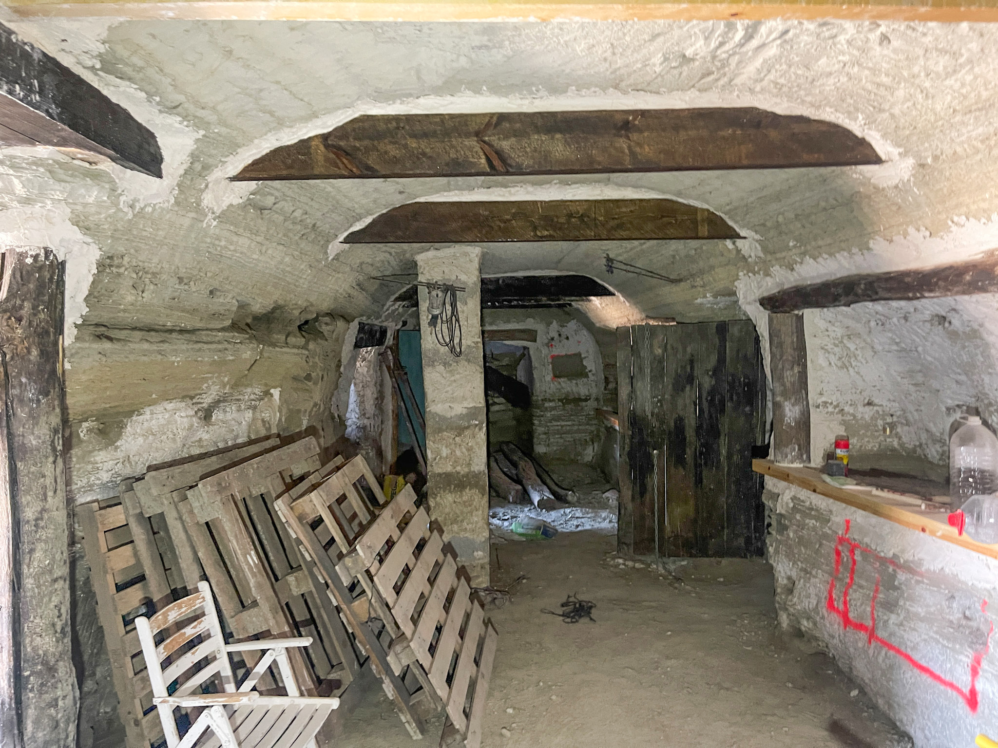 La première maison troglodyte dispose de deux accès indépendants : l'un mène à une pièce unique et l'autre donne accès à la zone principale, qui s'ouvre sur un vaste espace initialement prévu comme cuisine-salle à manger.