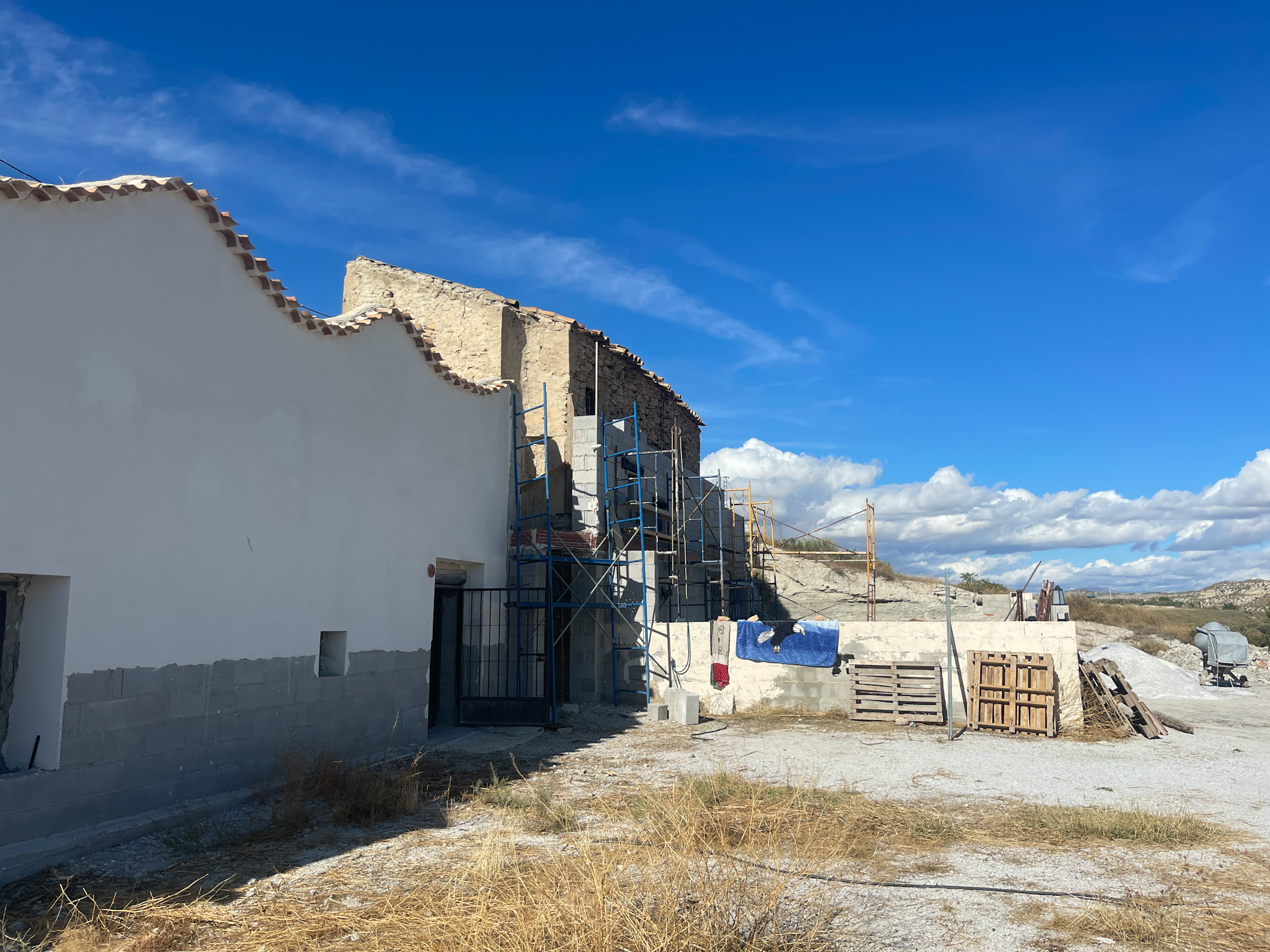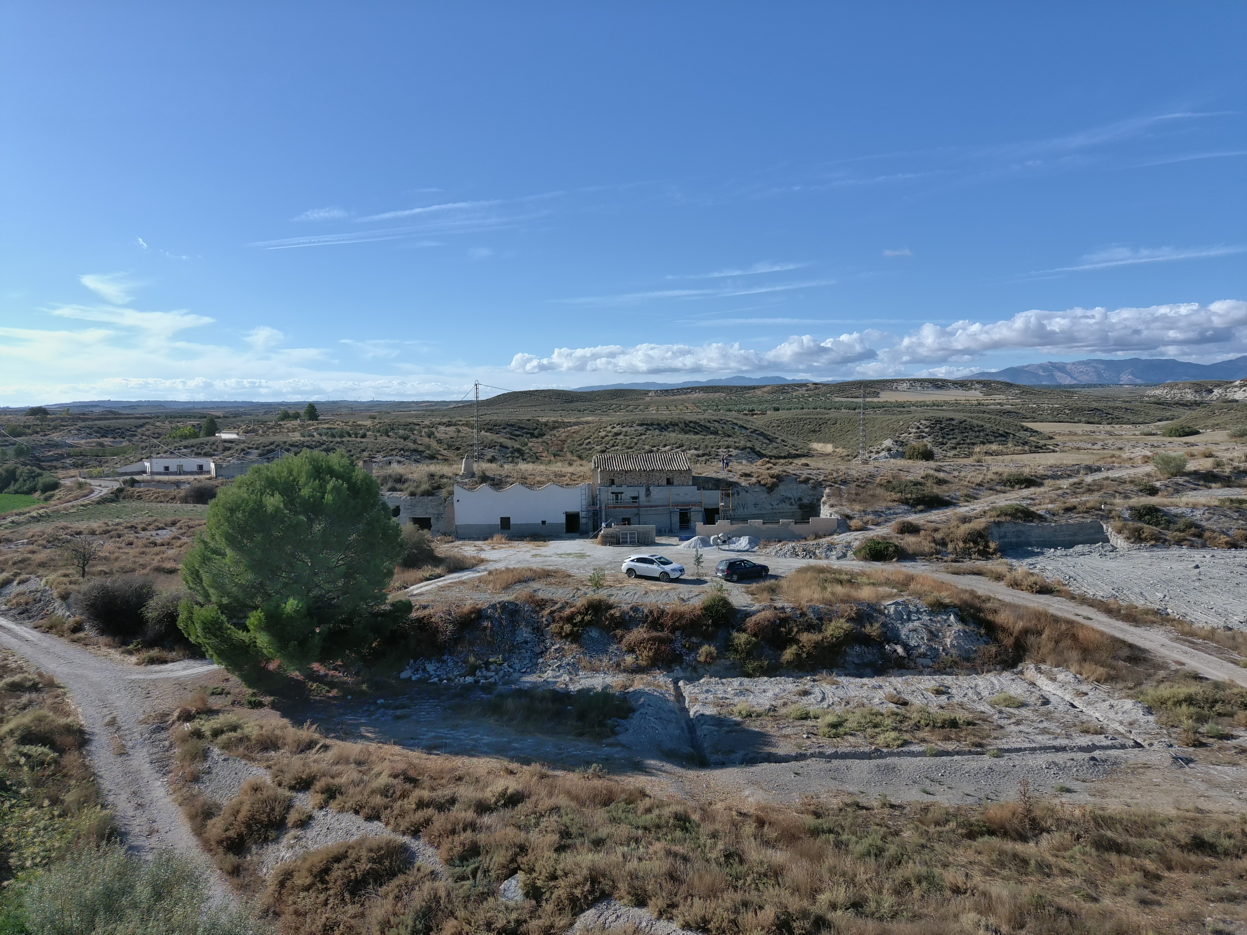Superbe propriété rurale avec 2 grandes maisons troglodytes mitoyennes à rénover, de grands patios et plus de 2 hectares de terrain, entourée par la nature et les terres agricoles. Elle offre une vue panoramique sur la colline de Jabalcón et les spectaculaires Badlands de Castilléjar.
