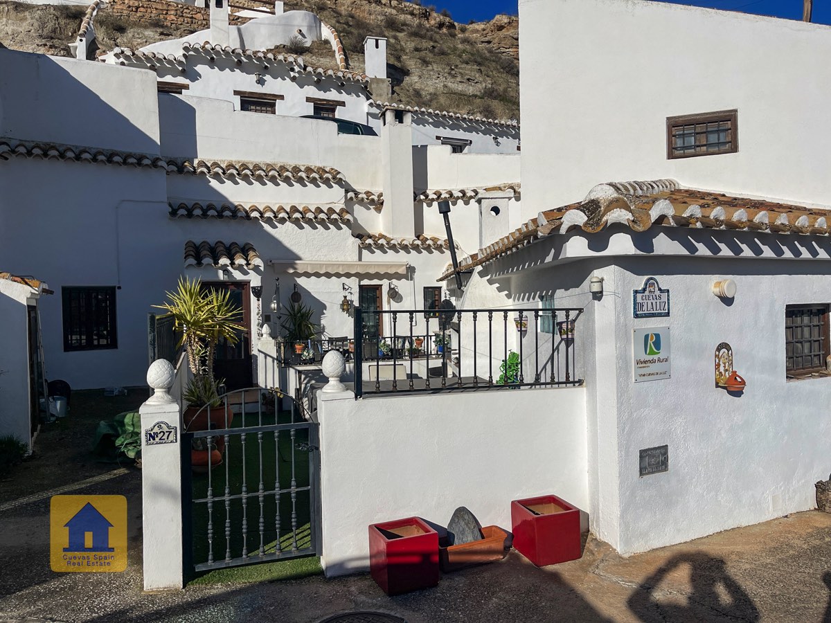 Cuevas de La Luz es un magnífico conjunto de casas cueva conectadas, impecablemente terminadas, cada una con amplios patios delanteros y vistas. La propiedad se encuentra en las alturas de Galera, un hermoso pueblo, popular para vacaciones o para vivir a tiempo completo. La casa de la derecha se utiliza como vivienda principal. La casa de la izquierda se utiliza como alquiler vacacional con licencia turística.