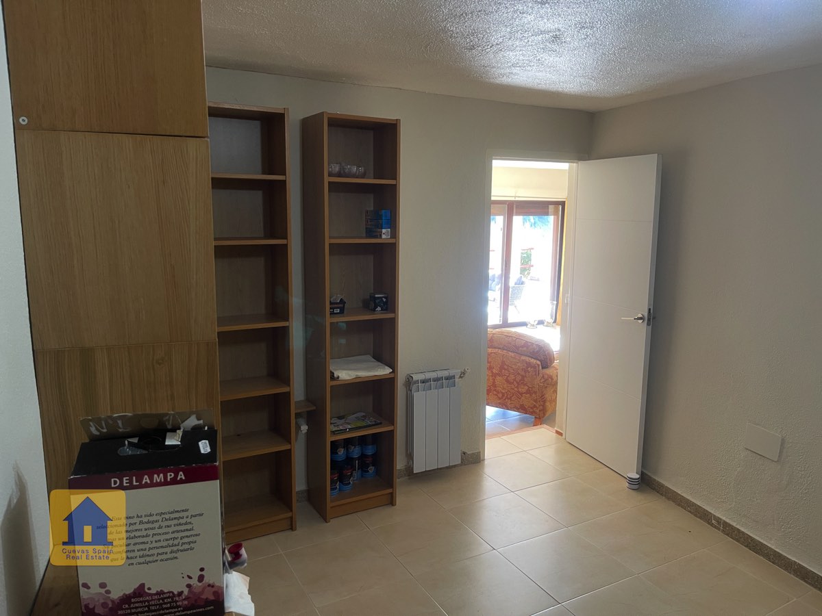 Depuis le salon, une porte mène à la cave à vin. Typiques de la région, les pièces troglodytes offrent un espace agréable, idéal aussi pour un petit salon ou une salle de jeux. Le salon donne sur le hall d'entrée, avec la porte d’entrée qui s'ouvre sur la terrasse.